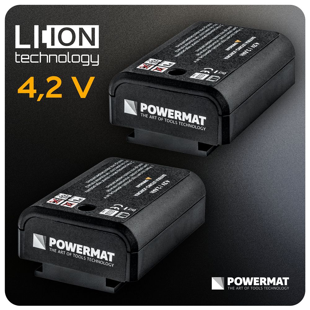 - 2x 4,2 V-os lítium-ion akkumulátor