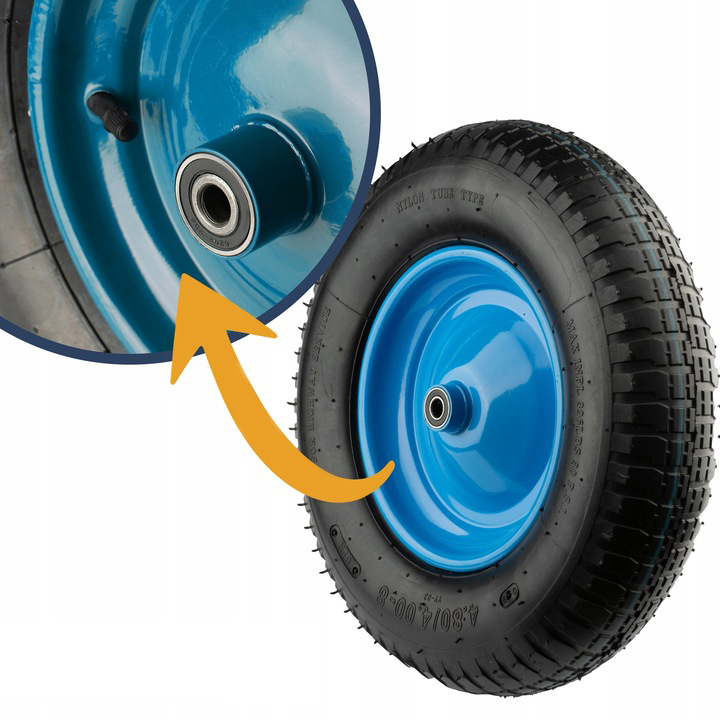 A dupla golyóscsapágyak biztosítják a sima mozgást és stabilitást, így még a nehéz terheket is könnyen és biztonságosan szállíthatja. A gumiabroncs 6 rétege pedig további védelmet és szilárdságot biztosít. A 250 kg-os maximális teherbírással és a 2,1 bar maximális nyomással ez a kerék ideális különféle felhasználási módokhoz, az építési munkáktól a kerttakarításig.