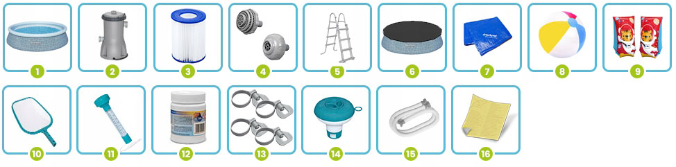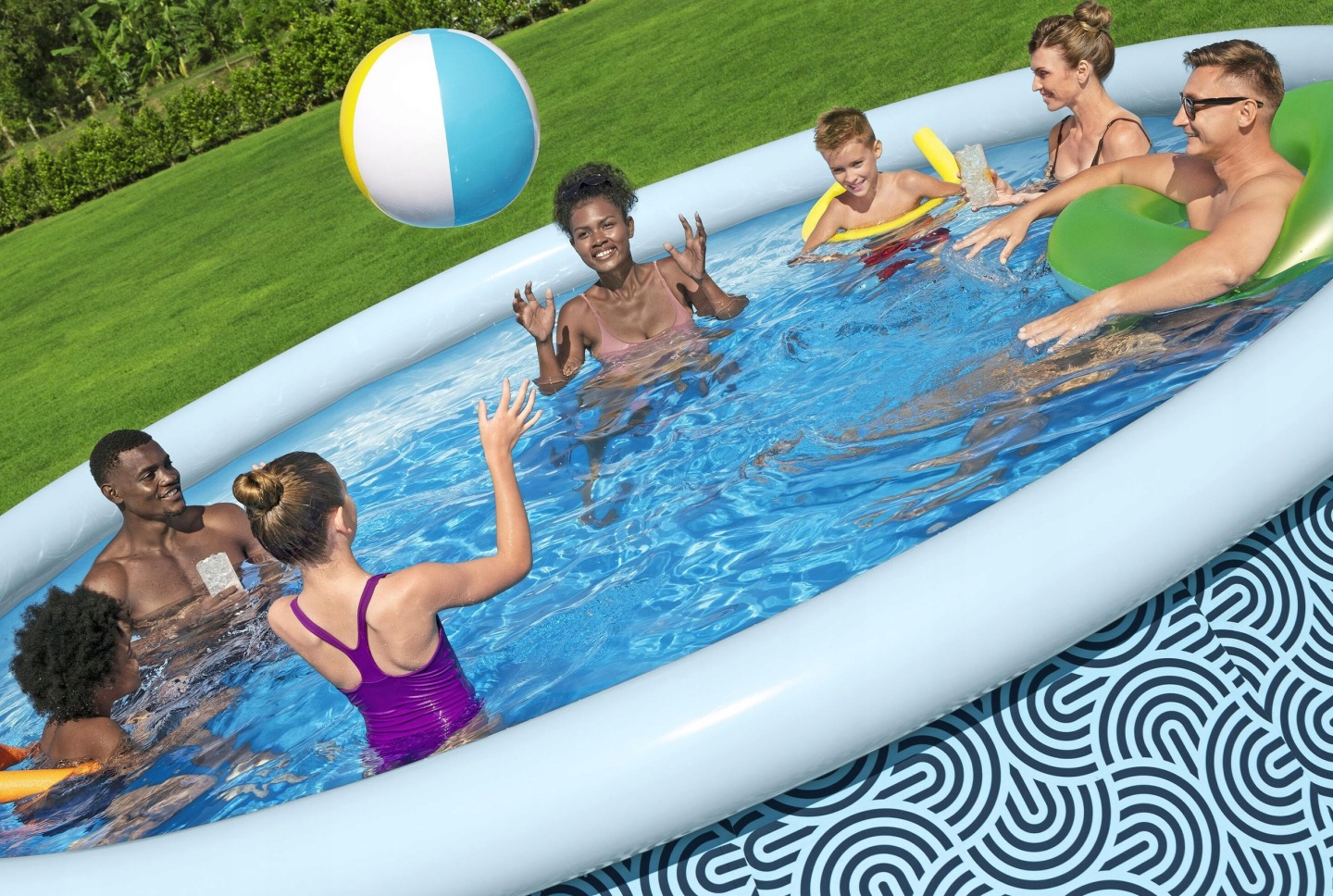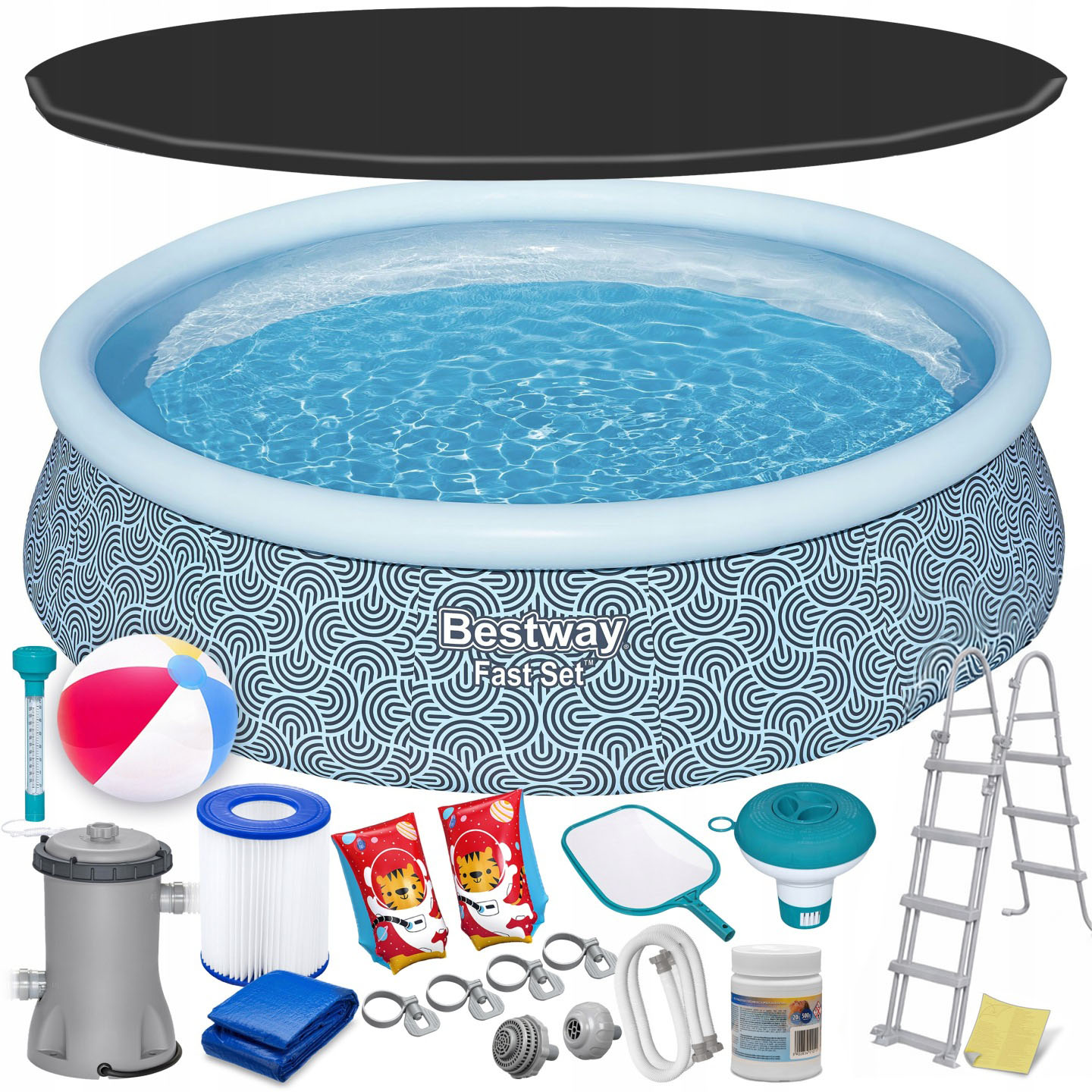 Kerti medence kiegészítőkkel 16 az 1-ben, 457x107cm | A Bestway egyszerű megoldást kínál a nyári felfrissülésre és a kényelmes úszásra közvetlenül a kertben. Önhordó szerkezete lehetővé teszi a könnyű, szerszám nélküli telepítést. Csak fújja fel a felső gyűrűt, és töltse fel vízzel, aminek köszönhetően a medence automatikusan feláll, és használatra kész.