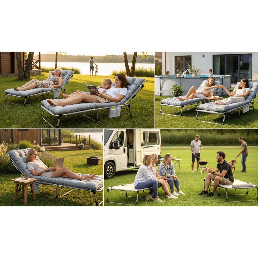 A masszív és stabil szerkezet biztosítja a megbízható használatot a mindennapi pihenés során. Az állítható háttámla lehetővé teszi az optimális ülési és fekvőpozíció beállítását az aktuális igényei szerint. A nyugágy felülete elegendő kényelmet biztosít a kikapcsolódáshoz, napozáshoz és a rövid pihenőkhöz a nap folyamán. A felhasznált anyagok ellenállnak a gyakori kültéri körülményeknek, és lehetővé teszik a könnyű karbantartást. A nyugágy felülete elegendő kényelmet biztosít további tartozékok nélkül, miközben a szerkezet könnyű és könnyen hordozható marad.