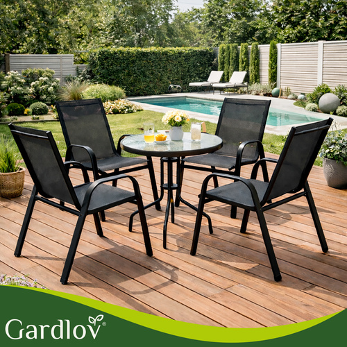 A 4 db, fekete | Gardlov kerti székek praktikus és kényelmes megoldást kínálnak erkélyen, teraszon vagy a kertben való ülőhelyekre, mindennapi használatra alkalmasak. A porfestett, masszív fémszerkezet stabilitást és korrózióállóságot biztosít, míg a lélegző PVC ülőfelület alkalmazkodik a testhez és növeli a kényelmet ülés közben.