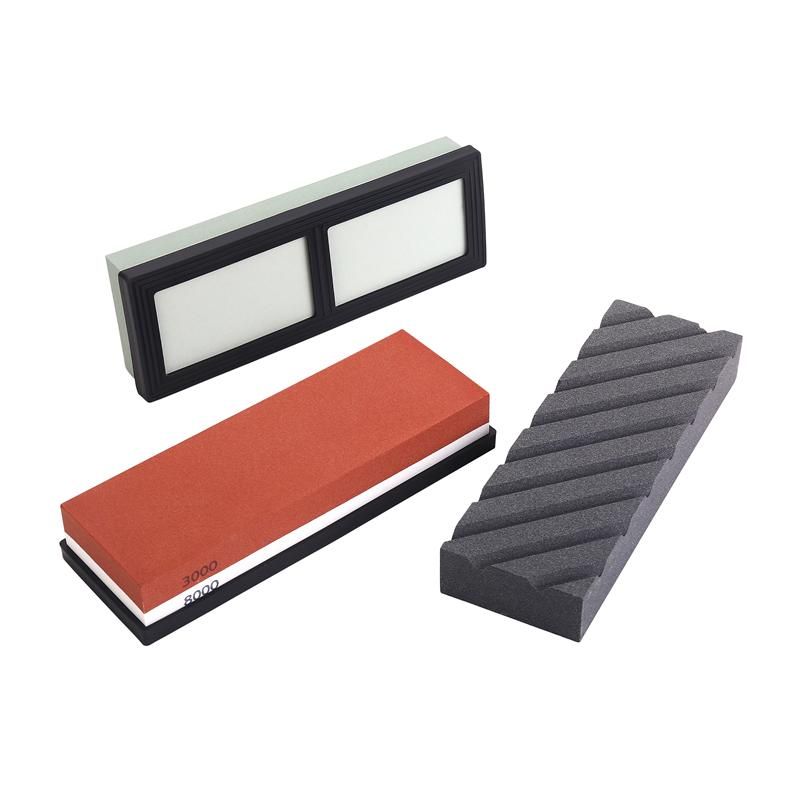 - A készlet különböző szemcseméretű köveket tartalmaz az első és a végső élezéshez