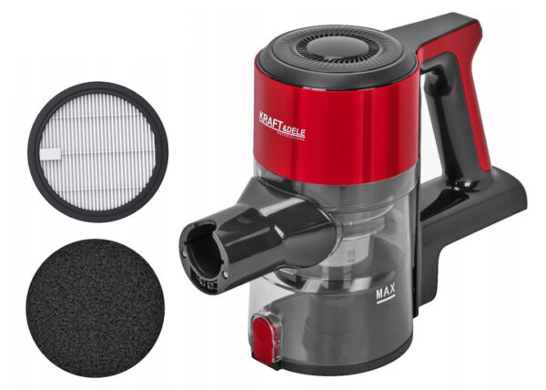A kézi függőleges porszívó, 2500mAh, 25.2V | KD5167 egy modern tisztítóeszköz beépített akkumulátorral, amely ötvözi a funkcionalitást, a kényelmet és a modern dizájnt. A LED-világítással és két sebességfokozattal ellátott elektromos kefének köszönhetően a porszívózás hatékony és kényelmes még a nehezen elérhető helyeken is.