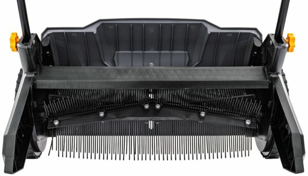 A munkamagasság 0 és 40 mm közötti fokozatmentes beállításának funkciója lehetővé teszi, hogy a készülék működését a felület típusához igazítsa – a sima járdáktól az egyenetlen gyepig. Ennek köszönhetően a gyűjtő biztosítja a kefék optimális talajjal való érintkezését, ami precíz tisztítást biztosít a gyep károsítása nélkül.