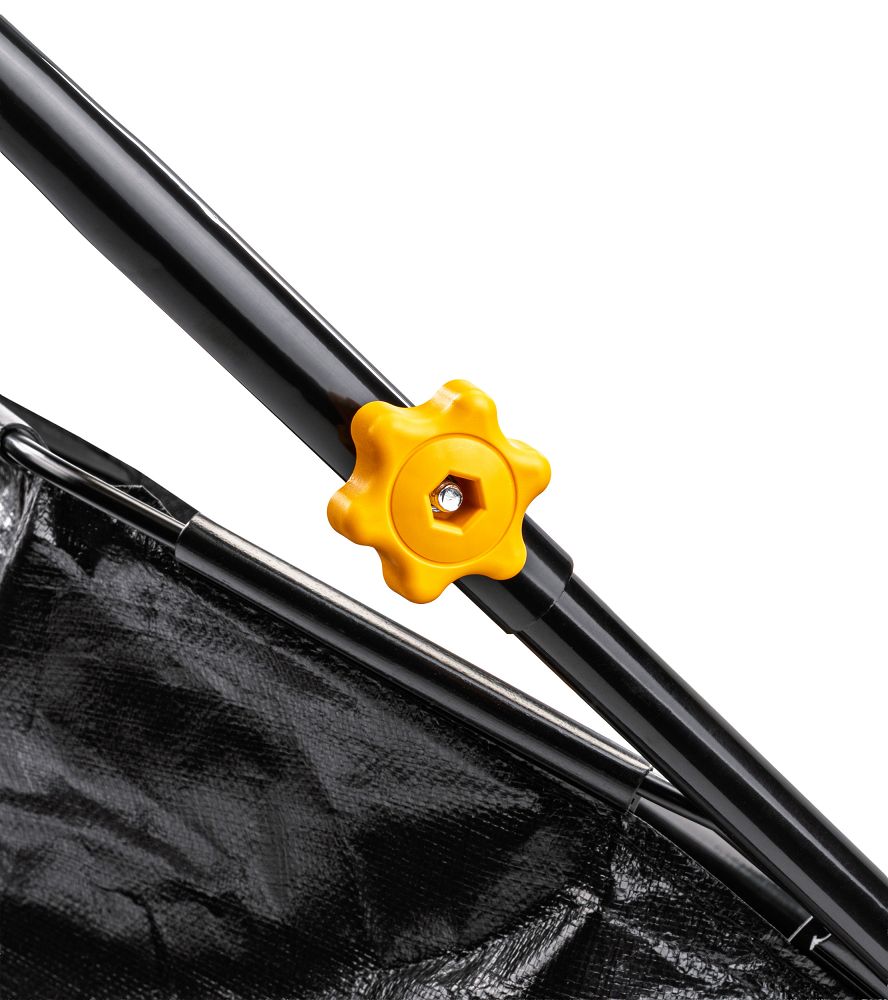 A 250 mm átmérőjű tartós kerekek sima kezelhetőséget és stabilitást biztosítanak különféle felületeken, beleértve a füvet, a térkövet és a kavicsot. Nagy átmérőjük lehetővé teszi a könnyű navigációt egyenetlen terepen, ami javítja a munkavégzés kényelmét és a készülék feletti irányítást. Az állítható poliuretán habbal ellátott fogantyú biztonságos fogást biztosít, és csökkenti a kézfáradtságot hosszabb használat során.