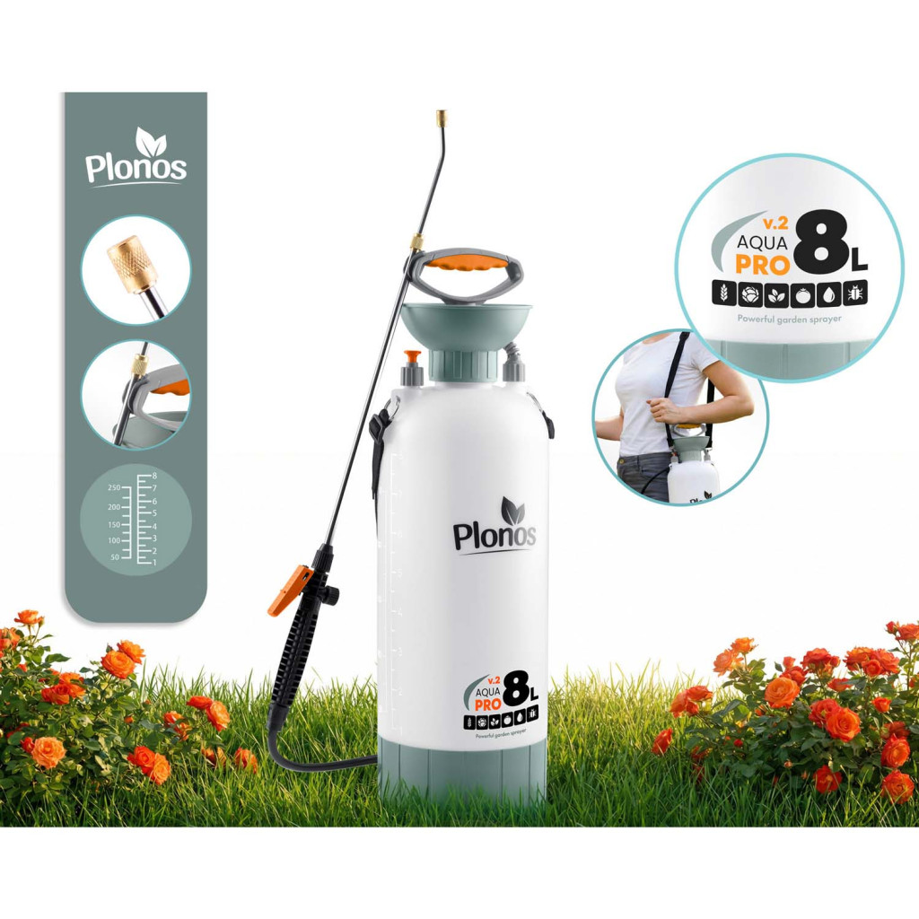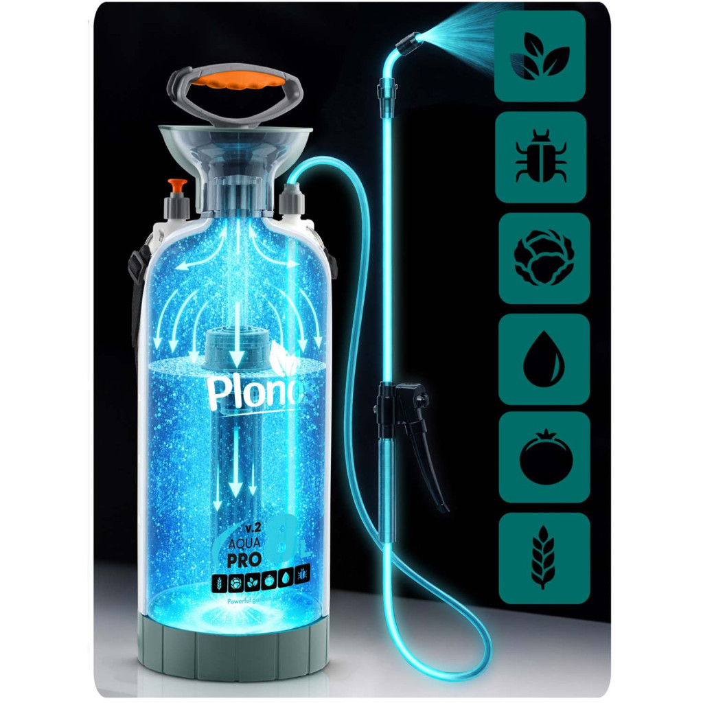 Kézi nyomású permetező PL-606, 8L | Plonos egy praktikus eszköz, amely alkalmas különféle kerti, háztartási és ház körüli munkákhoz. A készülék akár 2,76 bar stabil nyomást hoz létre, amely biztosítja a folyadékok egyenletes és hatékony permetezését. Az állítható fúvóka lehetővé teszi a sugár finom permettől az erősebb sugárig történő beállítását, így könnyen igazíthatja a permetezést egy adott alkalmazáshoz.