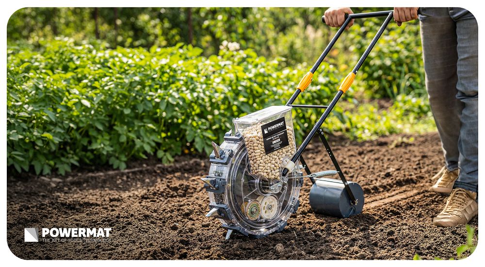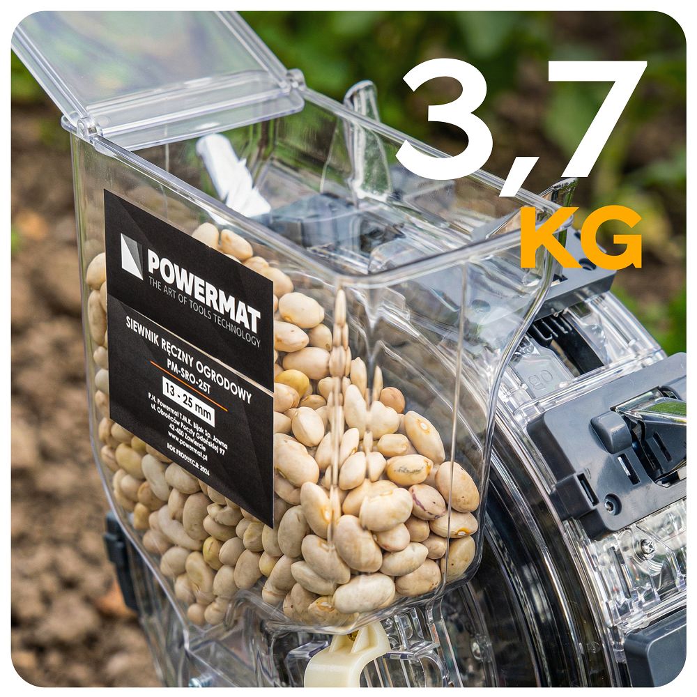 Kézi pontvetőgép, 3,7 kg | PM-SRO-25T lehetővé teszi a magok precíz és egyenletes vetését hajlás nélkül, megkönnyítve a kerti munkát. A készülék kefét használ a nagyobb magokhoz, és kanálrendszert a kisebbekhez, ami lehetővé teszi a vetési módszernek az anyag típusához való igazítását. Ennek köszönhetően a magokat ellenőrzött és egyenletes módon gyűjti össze és helyezi el. Csökkenti a vetés során fellépő sérülések és hibák kockázatát. Nagyobb sokoldalúságot ér el anélkül, hogy a készülék cseréjére lenne szükség.