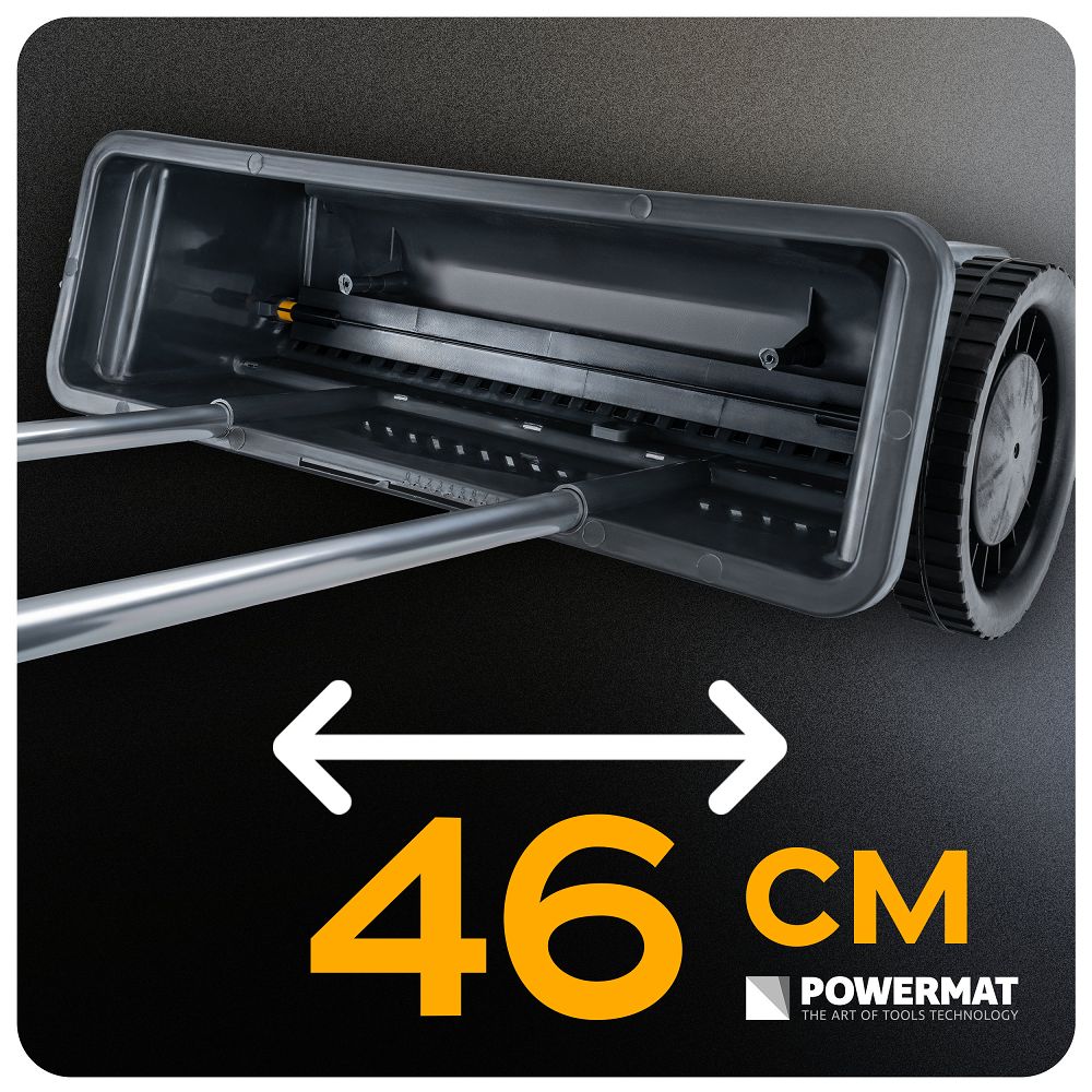A 7 cm széles penge stabil vetést és jobb irányítást biztosít. A 46 cm-es munkaszélesség lehetővé teszi, hogy egy menetben nagyobb talajsávot vetjen el, gyorsabban dolgozzon, csökkentse a menetek számát, a fáradtságot és a mozdulatok számát a pontosság feláldozása nélkül. A 109 cm-es fogantyúmagasság lehetővé teszi, hogy a vetőgépet függőleges helyzetben vezesse anélkül, hogy a menet teljes hosszában le kellene hajolnia.