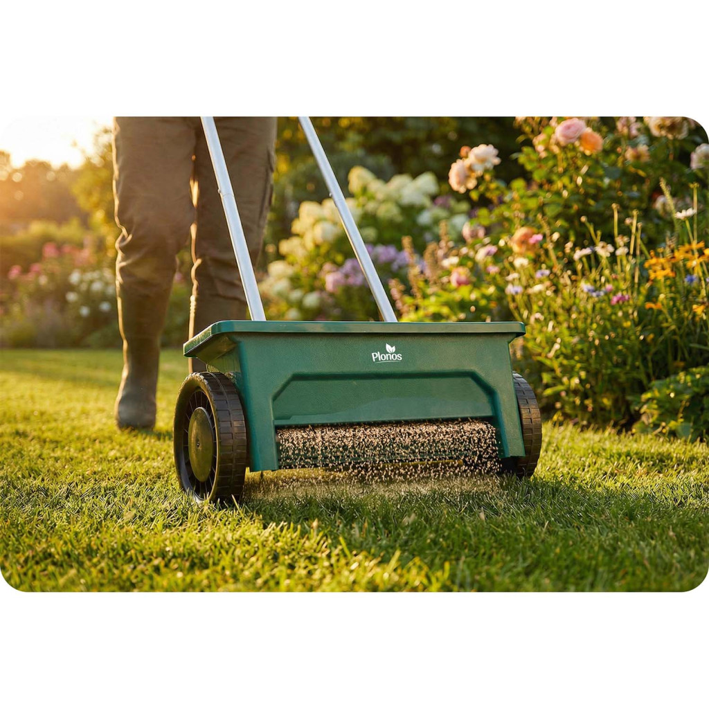 A PL-980, 12L | Plonos kézi vetőgép egy praktikus segítő, amely alkalmas magvak, műtrágyák és egyéb anyagok egyenletes elszórására a kertben egész évben. A 12 literes tartály lehetővé teszi a hatékony munkát nagyobb területeken is gyakori utántöltés nélkül, és akár körülbelül 10 kg anyagot is képes befogadni. A 10 szinten állítható vetésszabályozás pontos adagolást biztosít az anyag típusának megfelelően – a finom magvaktól a granulátumon át a sóig.
