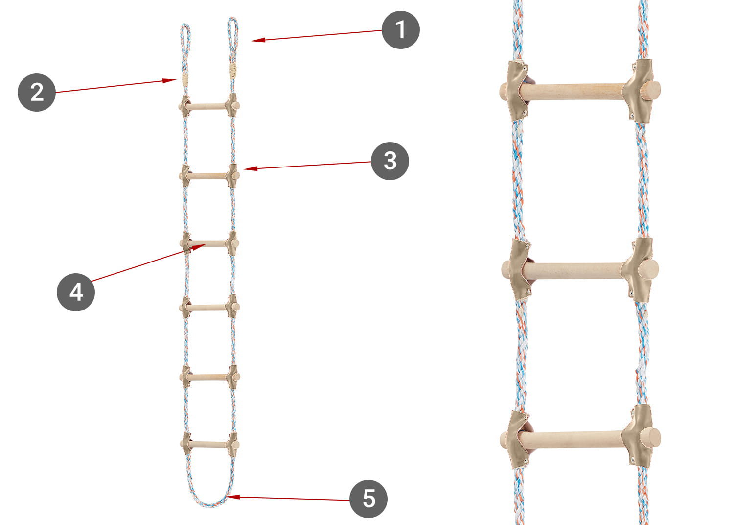 48 összefonódó polipropilén szálból készül, amelyeket nagyon nagy szilárdság jellemez. A gép precízen szövi a szálakat, és egy nagyon erős, 22 mm átmérőjű és kerek formájú kötelet hoz létre. A létra gyártása során a gyártó szándékosan polipropilént használt, amelyet nagy szilárdság és az időjárás viszontagságaival szembeni teljes ellenállás jellemez.