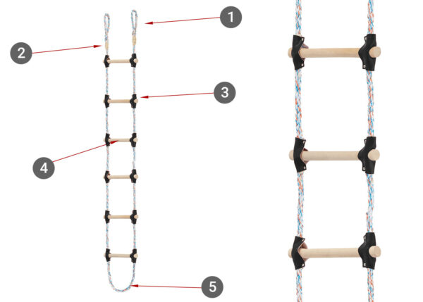 48 összefonódó polipropilén szálból készül, amelyeket nagyon nagy szilárdság jellemez. A gép precízen szövi a szálakat, és egy nagyon erős, 22 mm átmérőjű és kerek formájú kötelet hoz létre. A létra gyártása során a gyártó szándékosan polipropilént használt, amelyet nagy szilárdság és az időjárás viszontagságaival szembeni teljes ellenállás jellemez.