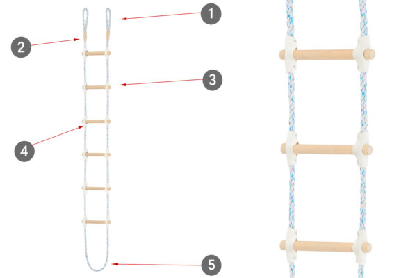 48 összefonódó polipropilén szálból készül, amelyeket nagyon nagy szilárdság jellemez. A gép precízen szövi a szálakat, és egy nagyon erős, 22 mm átmérőjű és kerek formájú kötelet hoz létre. A létra gyártása során a gyártó szándékosan polipropilént használt, amelyet nagy szilárdság és az időjárás viszontagságaival szembeni teljes ellenállás jellemez.