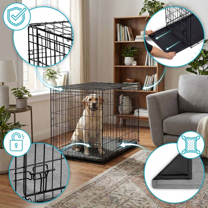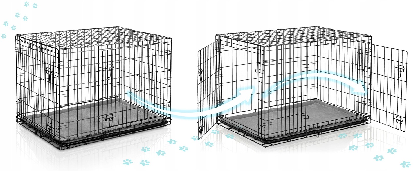 A masszív rudakkal ellátott fémszerkezetnek köszönhetően ellenáll a sérüléseknek és biztosítja a jó légáramlást, ami növeli kutyája kényelmét. A ketrec könnyen nyitható egy zárral ellátott ajtó segítségével, ami megkönnyíti az állat kezelését és hozzáférését, miközben biztosítja a biztonságos tartást a nem kívánt szökés nélkül. A ketrec megbízható összecsukható és kibontható mechanizmussal rendelkezik. Néhány mozdulattal lapos, könnyű és praktikus bőrönddé alakítható. Könnyen hordozható, tárolható vagy autóba is vihető.
