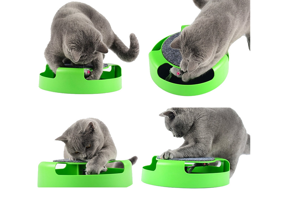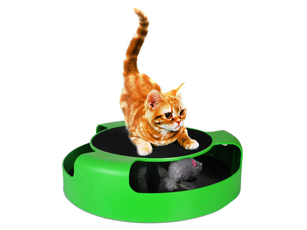 A macskajáték kaparófával | 25×6,5cm olyan macskáknak készült, akik szeretnek játszani és hancúrozni, ennek a látványosságnak köszönhetően nem fognak unatkozni. Alternatívát kínál a természetes környezetben való vadászathoz, ugyanakkor nagyszerű szórakozást nyújt kedvencének. A játék két funkcióval rendelkezik, amelyek hosszú ideig lekötik a macskát. Az első egy egér, amely körbe-körbe szaladgál, és mancsérintésre elkezd mozogni, a második pedig egy kör alakú kaparófát. A készülék csúszásgátló betétekkel rendelkezik, amelyek megvédik a padlót a karcolásoktól. Három nagy lyuk lehetővé teszi, hogy a macska könnyen behelyezze a mancsait ezekbe.