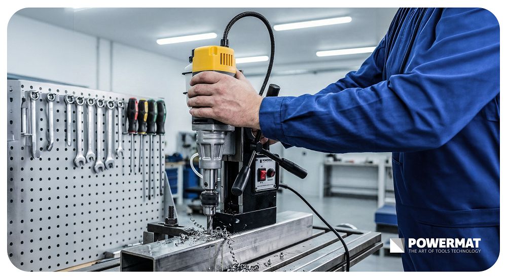 Mágneses fúró, 1500W, 11500N | PM-WM-1500M acél és fémszerkezetek fúrásához, ahol nem megfelelő a kézi vagy asztali eszközök használata. Stabil rögzítést, nagy teljesítményt és pontosságot, rövidebb munkaidőt, valamint függőleges, vízszintes és fej feletti fúrás lehetőségét kapja. Ez a fúró stabil rögzítést biztosít problémamentesen. Időt, idegeket és javításokat takarít meg, mert a szerszám pontosan ott marad, ahol szüksége van rá.