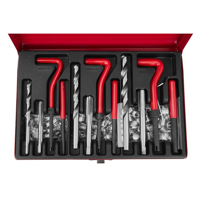 A menetjavító készlet, 88 darabos | KD10591 a legmagasabb minőségű edzett acélból készült elemeket tartalmazza, így minden műhelyben és garázsban bizonyítani fogja a helyét. A készlet mindenféle menetes kötés javítására használható a legtöbb anyagban. A nagyszámú elemnek köszönhetően a készlet nagyon sokoldalú. Minden szerszám a legmagasabb minőségű anyagokból – kiváló minőségű HSS acélból – készült. Ez garantálja a tartósságot a műhelyben való hosszú távú használat során. A teljes készlet egy masszív fémdobozban található, amelyben minden szerszámnak kijelölt helye van a rendben tartás érdekében.