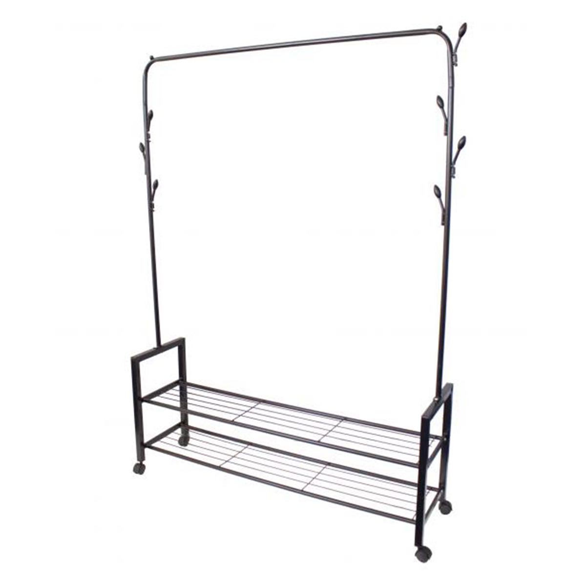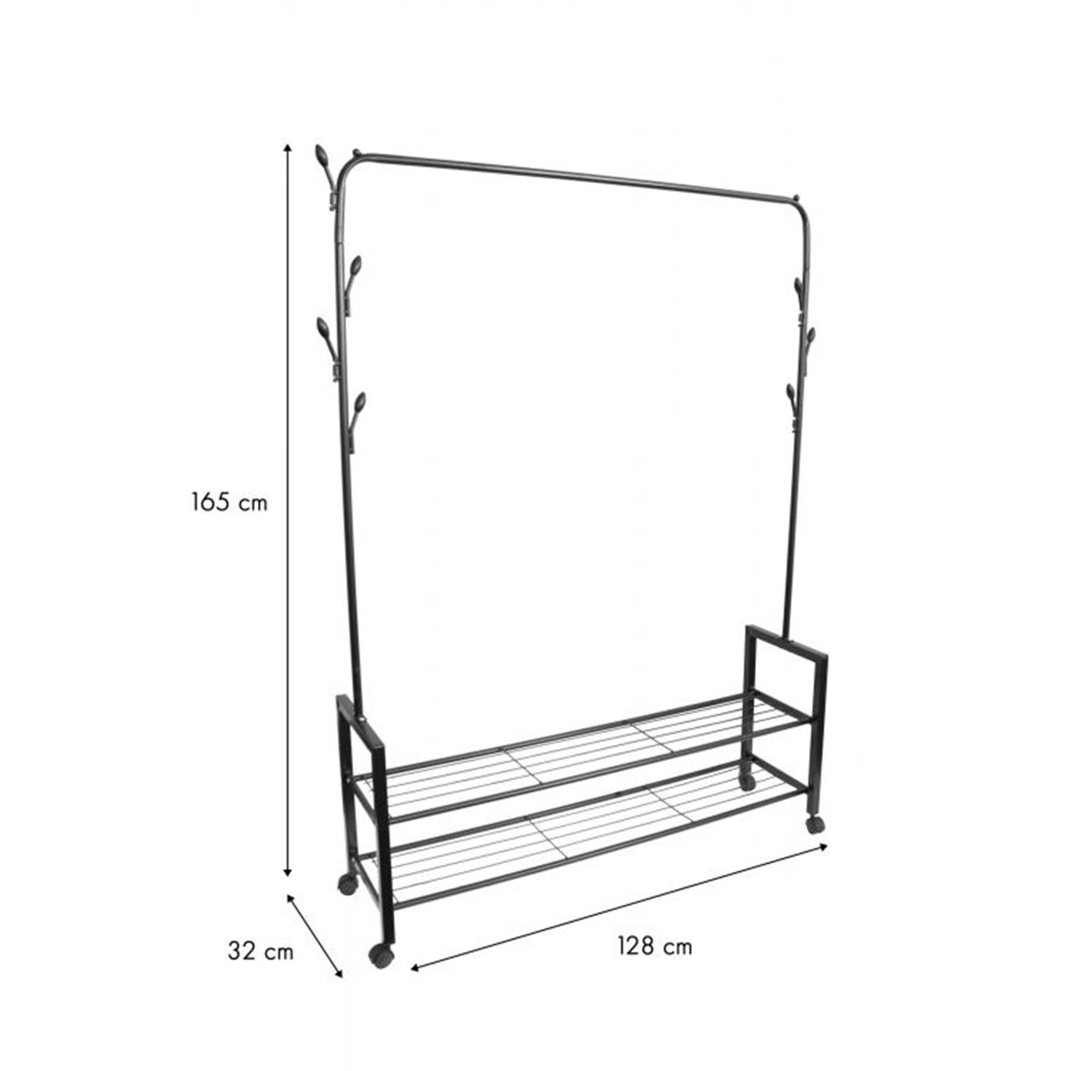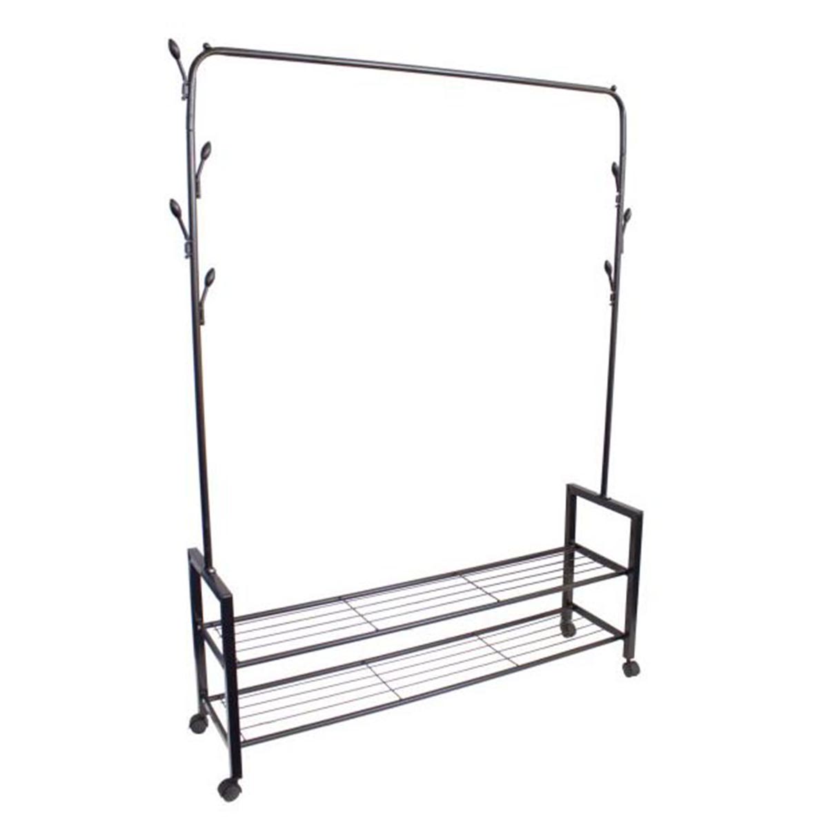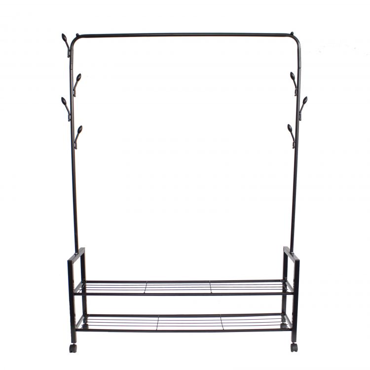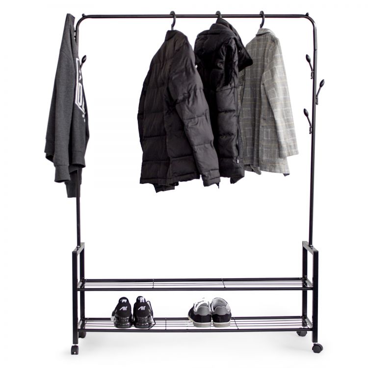 Az álló ruhaállvány praktikus módja a ruhák és cipők tárolásának, így tökéletesen illeszkedik bármelyik szekrénybe, hálószobába vagy előszobába a házban vagy a lakásban. Ez az állvány ideális lesz bárhol, ahol nincs hely ruhák felakasztására. További előnye a teljes mobilitás, a tartós kerekeknek köszönhetően a ruhaállványt nagy erőkifejtés nélkül mozgathatja.