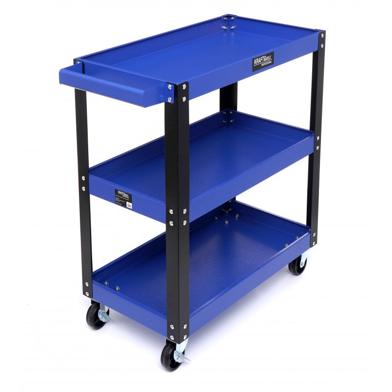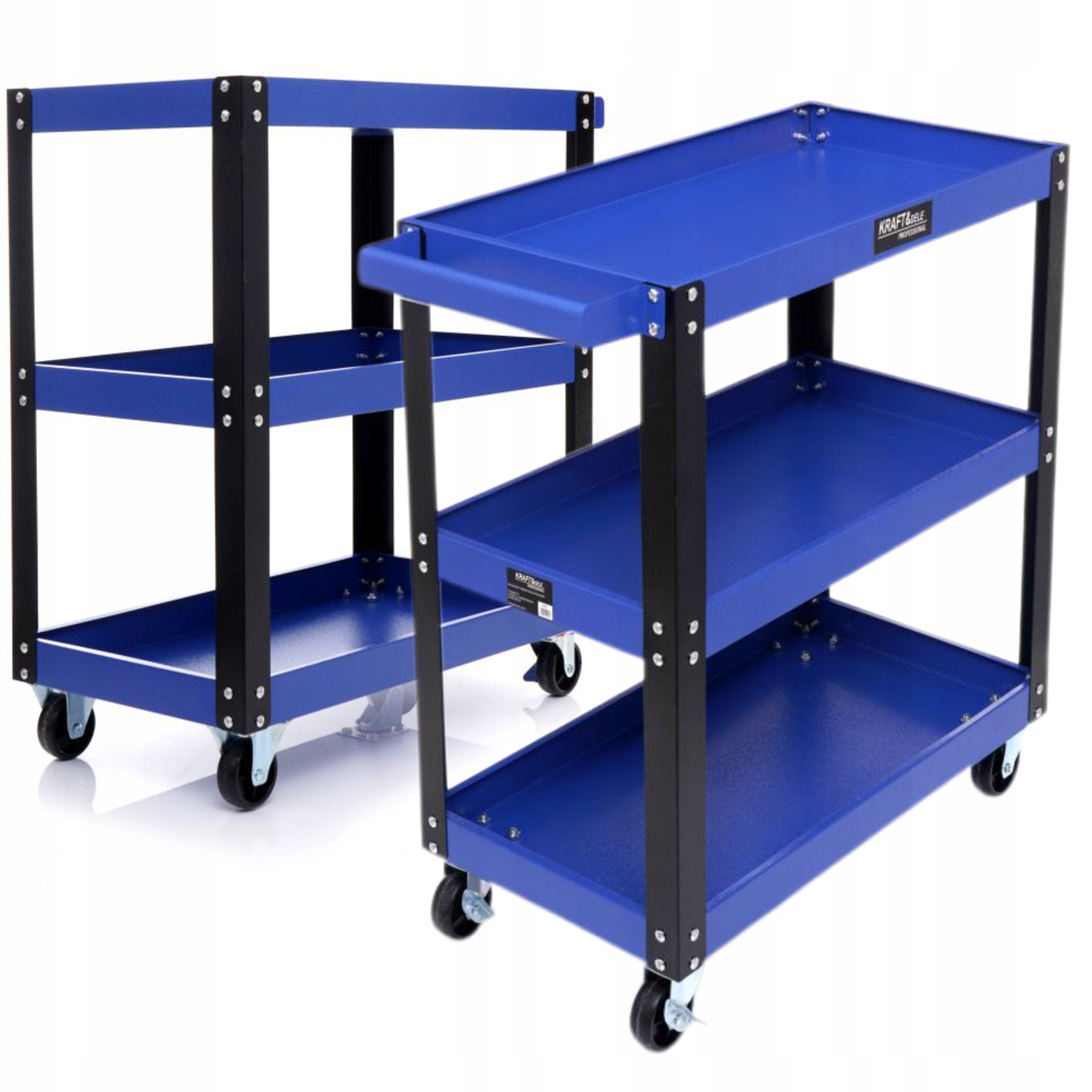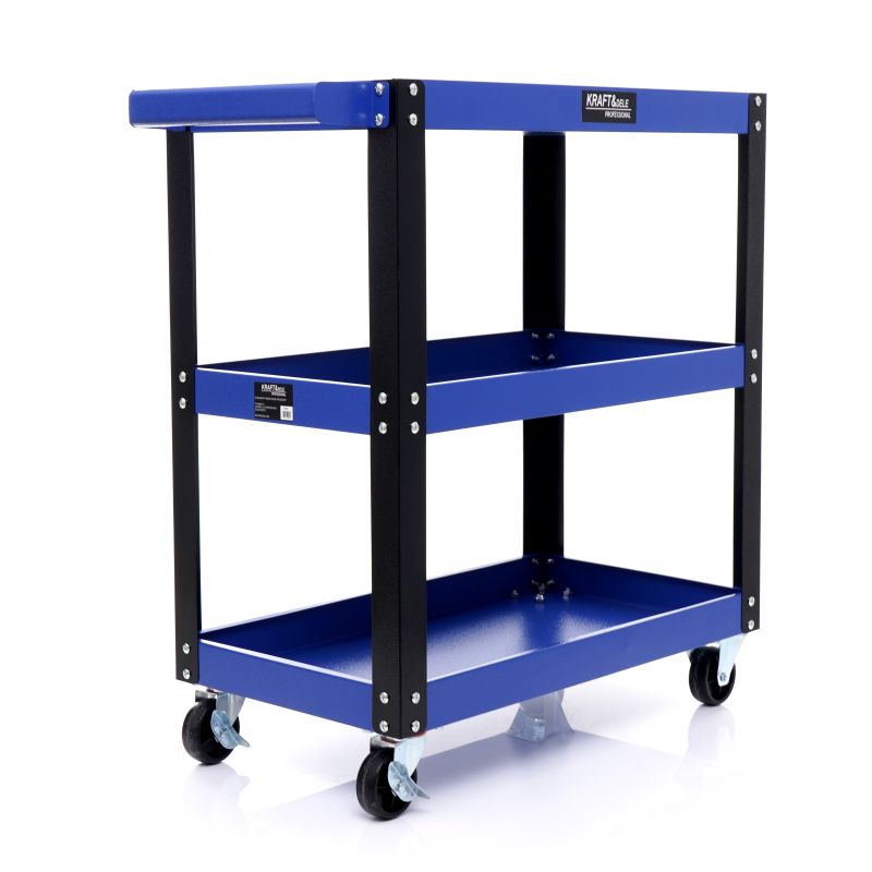 A 3 polccal | KD1066 műhelykocsit a műhelyben, garázsban vagy szervizben használt berendezések és szerszámok szervezett tárolására és egyszerű kezelésére tervezték. A kocsi három, 4,5 cm mély polccal rendelkezik, és szerszámok tárolására, valamint kisebb tárgyak szállítására szolgál. Alkalmas műhelyekbe, szervizközpontokba és otthoni garázsokba, és masszív acélszerkezetének és négy keréknek köszönhetően, amelyek közül kettő forgó, könnyű kezelhetőséget és nagy tartósságot biztosít. A nagyobb hátsó és a kisebb első kerekek megkönnyítik a manőverezést még nehéz terhelés esetén is.