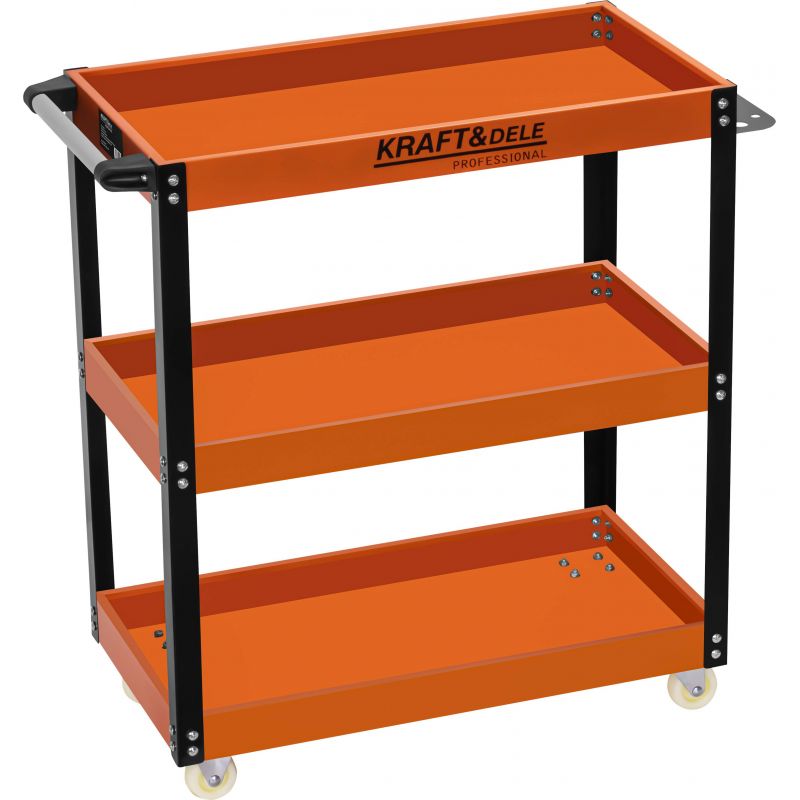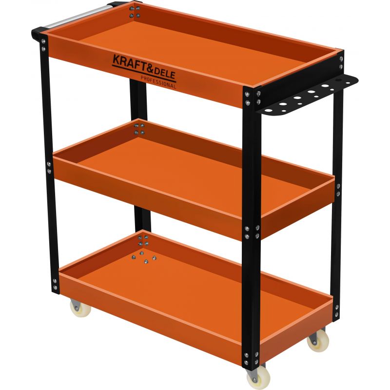 Műhelykocsi, 3 polccal | A KD1092 egy masszív és funkcionális műhelykocsi, amelyet a szerszámok és tartozékok kényelmes munkahelyi rendszerezésére terveztek. Műhelyben, garázsban, szervizben és mobil munkákban is bizonyítja a létjogosultságát, ahol a berendezésekhez való gyors hozzáférés fontos. A kocsi három tágas, megemelt szélű polccal van felszerelve, amelyek megakadályozzák a szerszámok elcsúszását mozgatás közben.