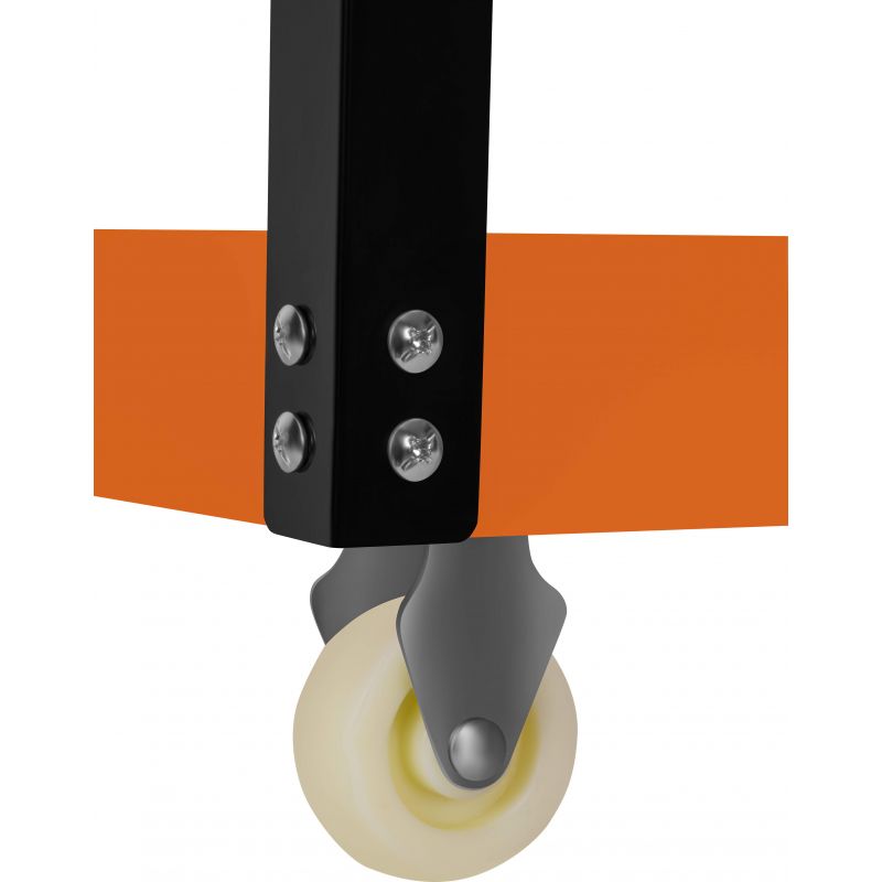 A stabil acélszerkezet tartósságot és teherbírást biztosít, míg a négy szállítókerék lehetővé teszi a kocsi zökkenőmentes mozgatását különböző felületeken. További előny az ergonomikus szállítófogantyú és a lyukakkal ellátott oldalsó sín, amely lehetővé teszi a szerszámok felakasztását. A kompakt kialakítás és az elemek átgondolt elrendezése kényelmessé teszi a kocsi használatát, és lehetővé teszi a rend fenntartását a munkahelyen.