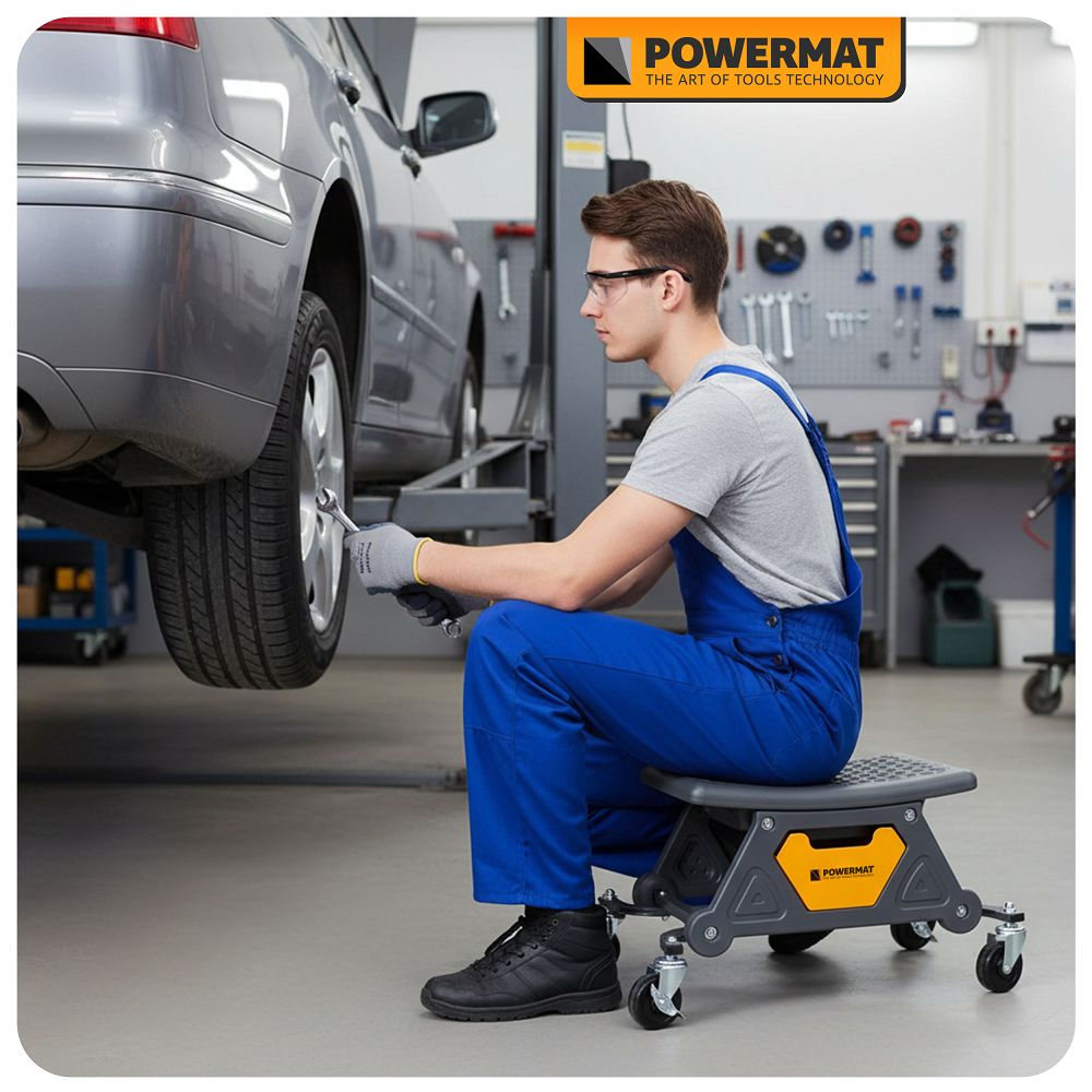 A robusztus konstrukciót a gyártó mindennapi használatra tervezte, és megbízható tartást és tartósságot biztosít garázs- és műhelykörülmények között. A 46 × 25,5 cm méretű ülés megfelelő tartást biztosít hosszabb munkafeladatok során, csökkenti a pontszerű nyomást és növeli a kényelmet. A 35 cm-es magasság megkönnyíti a javításokat, karbantartást és szerelést alacsony pozícióban, segít fenntartani a természetes testhelyzetet, és csökkenti a térd és a derék terhelését.