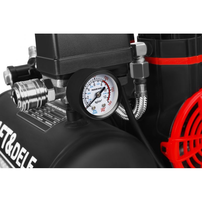 8 bar nyomáson akár 125 l/perc teljesítményt is elér, ami hatékony munkavégzést tesz lehetővé különféle alkalmazásokban, míg a nyomásmérő, a gyorscsatlakozó és a túlterhelésvédelem reset gombbal biztosítja a szabályozhatóságot és a biztonságot. A nyomáskapcsoló automatikusan bekapcsolja a kompresszort, amikor a nyomás csökken, és kikapcsolja, amikor eléri a maximumot, így csak szükség esetén működik, növelve élettartamát és használati kényelmét, míg a stabil konstrukció gumi lábakkal és szállítófogantyúval megkönnyíti a kezelését.