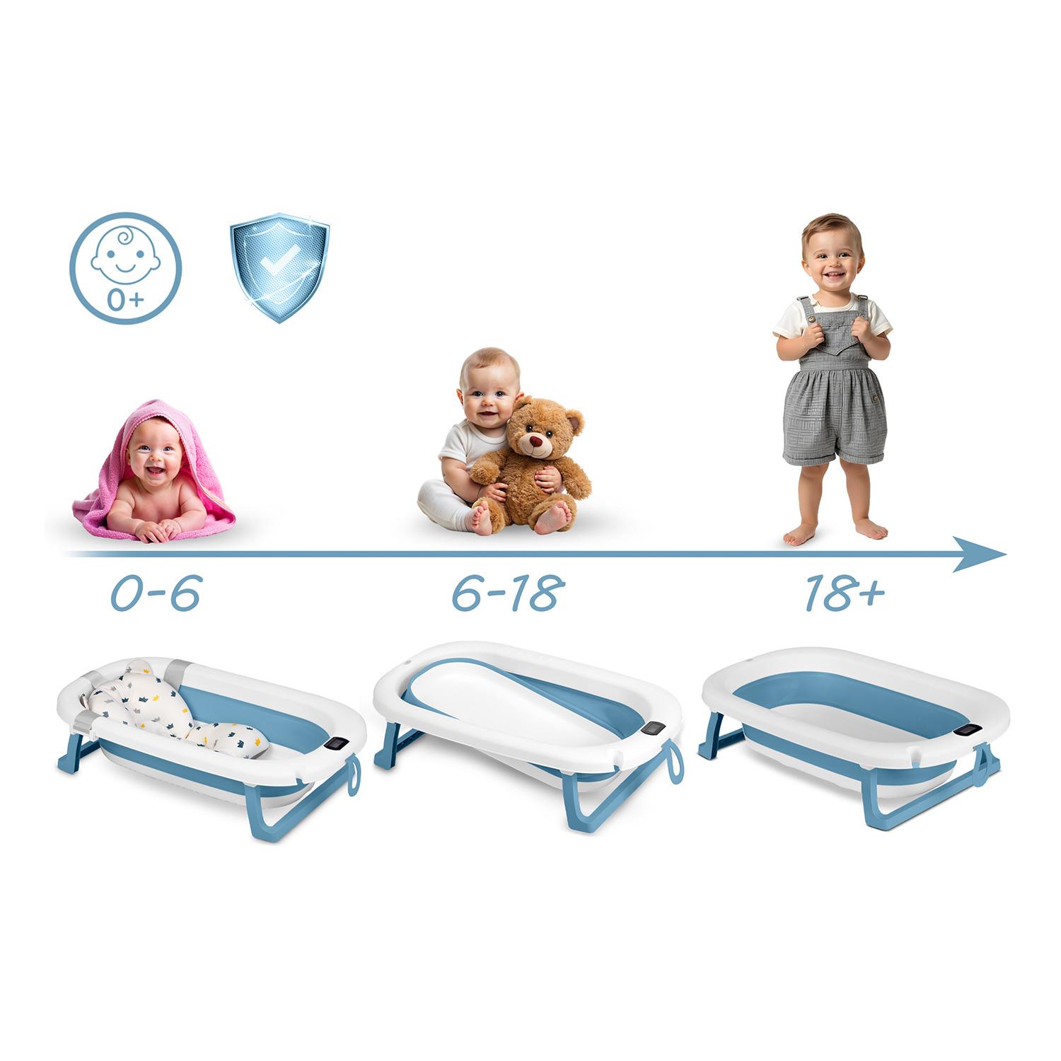 A kialakítás tartós műanyagokat ötvöz, amelyek ellenállnak a nedvességnek és a gyakori vízzel való érintkezésnek. Az összecsukható kialakítás, a hőmérő, a kényelem és a biztonság kombinációja alkalmassá teszi ezt a fürdőkádat újszülöttek és kisgyermekek számára, így nagyszerű választás azoknak a szülőknek, akik praktikus megoldást keresnek otthoni vagy útközbeni fürdetéshez.