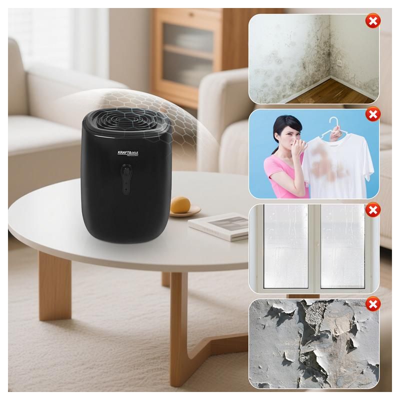 Párátlanító, 800ml, 35W | KD11786 egy kompakt és nagy teljesítményű készülék, amely hatékonyan eltávolítja a felesleges nedvességet a helyiségekből. Ideális otthonokba, fürdőszobákba, gardróbokba, pincékbe, lakókocsikba és bárhová, ahol a párás levegő problémát jelent. A készülék termoelektromos technológiát (Peltier) használ, ami csendessé és energiatakarékossá teszi. A 800 ml-es térfogatú és napi 330 ml-es kapacitású tartály hosszú és karbantartásmentes működést tesz lehetővé. Csak csatlakoztassa a hálózathoz, és élvezze a száraz és egészséges levegőt!