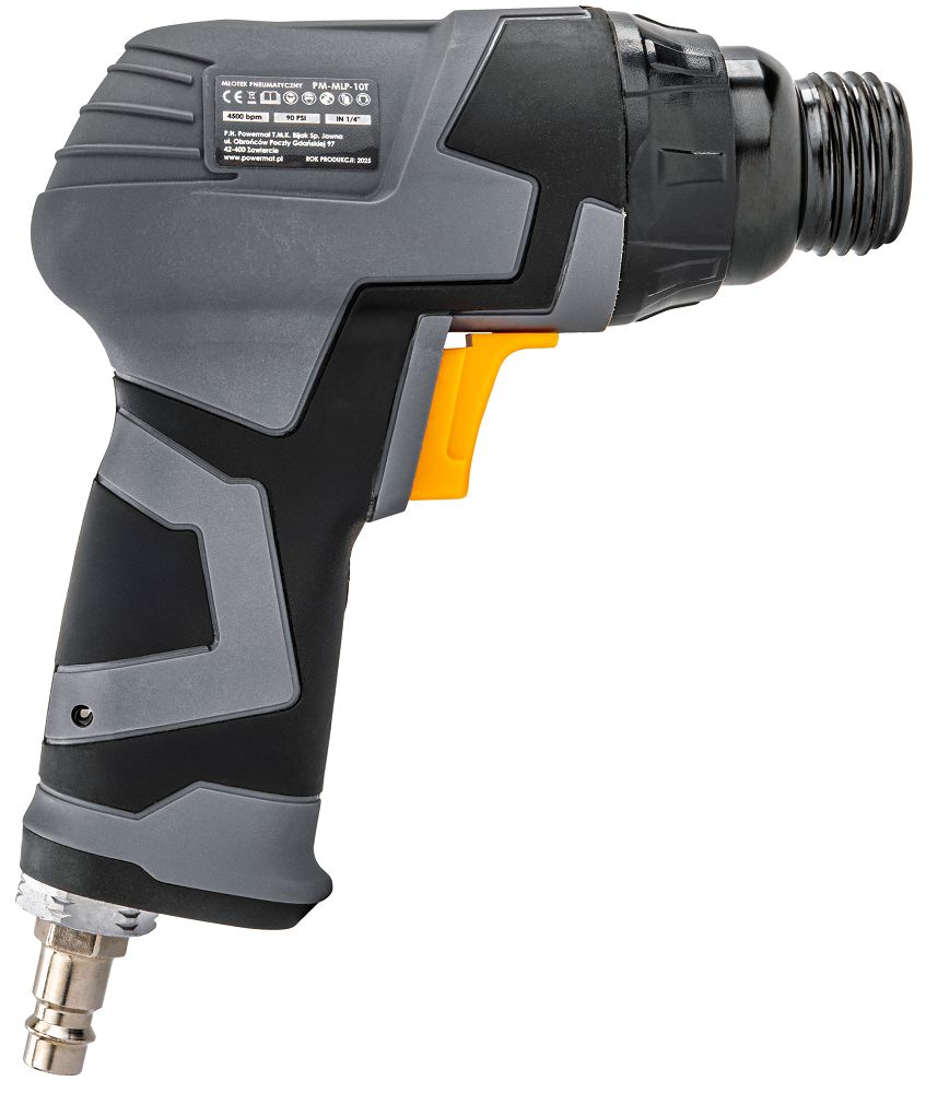 A készülék pneumatikus rendszerekkel működik egy szabványos 1/4″-os csatlakozón keresztül, amely teljes kompatibilitást biztosít a legtöbb tömlővel és sűrített levegős rendszerrel. Ezáltal a műhelyberendezéshez való csatlakozás gyors és egyszerű, a légáramlás pedig stabil és hatékony marad, biztosítva a zavartalan és hatékony működést.