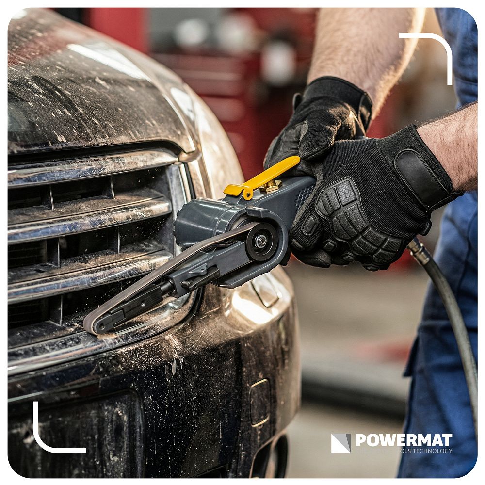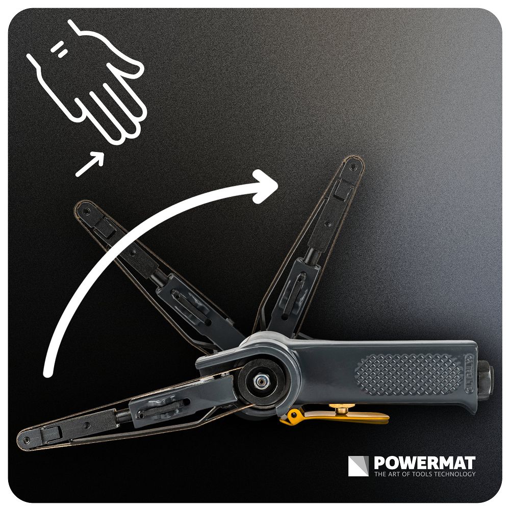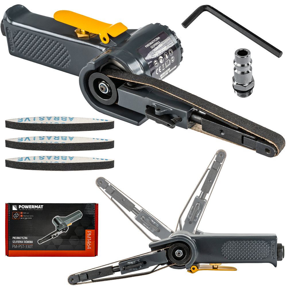 A 10x330mm | PM-PST-330T pneumatikus szalagcsiszoló fém és egyéb anyagok precíz csiszolására, tisztítására és megmunkálására szolgáló eszköz. A keskeny, 10 x 330 mm-es szalag lehetővé teszi a nehezen elérhető helyek és részletek elérését. Precízen megmunkálhatja az éleket, hegesztési varratokat és sarkokat anélkül, hogy összezavarodna és időt pazarolna. A 20 000 fordulat/perc sebesség hatékony anyagleválasztást és rövidebb megmunkálási időt jelent. Gyorsabban dolgozhat, az eredmény pedig egyenletes és megismételhető.