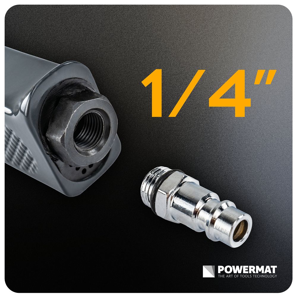 A pneumatikus hajtás stabil működést garantál a szerszám túlmelegedése nélkül. Nagyobb kontrollja van a csiszolás felett, és hosszabb ideig dolgozhat teljesítménycsökkenés nélkül. A 0,63 MPa nyomás kompatibilis a szokásos pneumatikus berendezésekkel. Az 1/4″-os csatlakozó lehetővé teszi a könnyű csatlakoztatást egy pneumatikus rendszerhez. Ez lehetővé teszi a szerszám gyors előkészítését a munkához további adapterek nélkül. Kényelmesebben használhatja különféle műhelyi körülmények között. A kompakt kialakítás megkönnyíti a szűk helyeken történő munkát. Hozzáférhet olyan helyekhez is, ahol a standard szerszámok nem elegendőek.