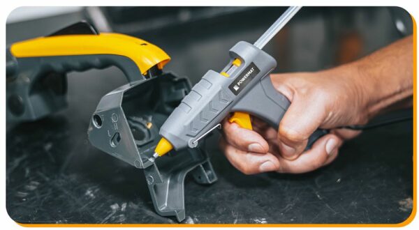 A pisztoly 7 mm átmérőjű ragasztórudakat használ, így a piacon kapható rudak széles választékából választhat, és a fától a textíliákig különféle anyagokon használhatja. A készüléket egy praktikus, kompakt tokban tárolhatja, amely megvédi a sérülésektől és megkönnyíti a szállítást, így mindig használatra kész lesz.