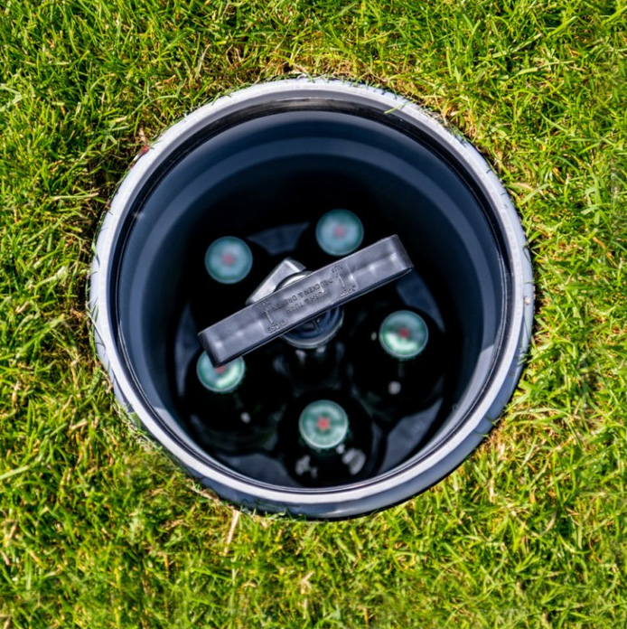 Sörhűtő PREMIUM, HopfenHÖHLE HH | BGU-HH-PRÉMIUM egy stílusos és praktikus megoldás a palackok gyors és hatékony hűtésére közvetlenül a talajban. Ez a talajhűtő elektromos áram nélkül működik – egyszerűen a földbe temethető, ahol a stabil talajhőmérséklet természetes módon kellemesen hűvösen tartja az italokat.