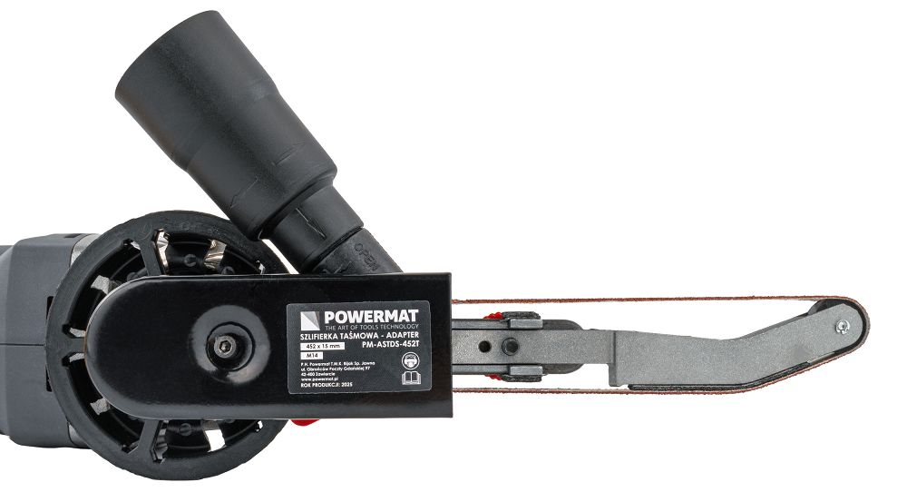 A szalagcsiszoló tartozék | PM-ASTDS-452T egy praktikus tartozékot is tartalmaz, amely a sarokcsiszolót univerzális szalagcsiszolóvá alakítja. Az adapter stabil és ellenőrzött működést biztosít acél, rozsdamentes acél és színesfémek csiszolásakor. Ideális hegesztések simításához, élek letöréséhez, felületek tisztításához és alkatrészek további megmunkáláshoz vagy hegesztéshez való előkészítéséhez.