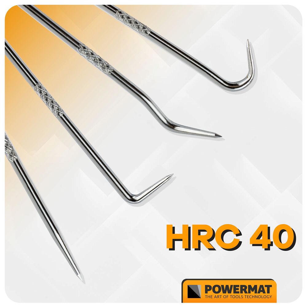 A 4 db-os szerelőhorogkészlet | PM-ZHDO-4T 4 különböző hegyet tartalmaz, amelyek lehetővé teszik a szerszám gyors hozzáigazítását egy adott feladathoz. A szerszámok ideálisak O-gyűrűkkel, tömítésekkel és gyűrűkkel való munkához, megkönnyítve az alkatrészek összeszerelését és szétszerelését mechanikus és autóipari rendszerekben. A vékony horgok garantálják a kis alkatrészek, például bilincsek, gyűrűk vagy gumitömítések pontos eltávolítását. A hegyek megfelelő geometriája lehetővé teszi a szűk helyeken való munkavégzést, és garantálja a szerszám mozgásának teljes kontrollját.