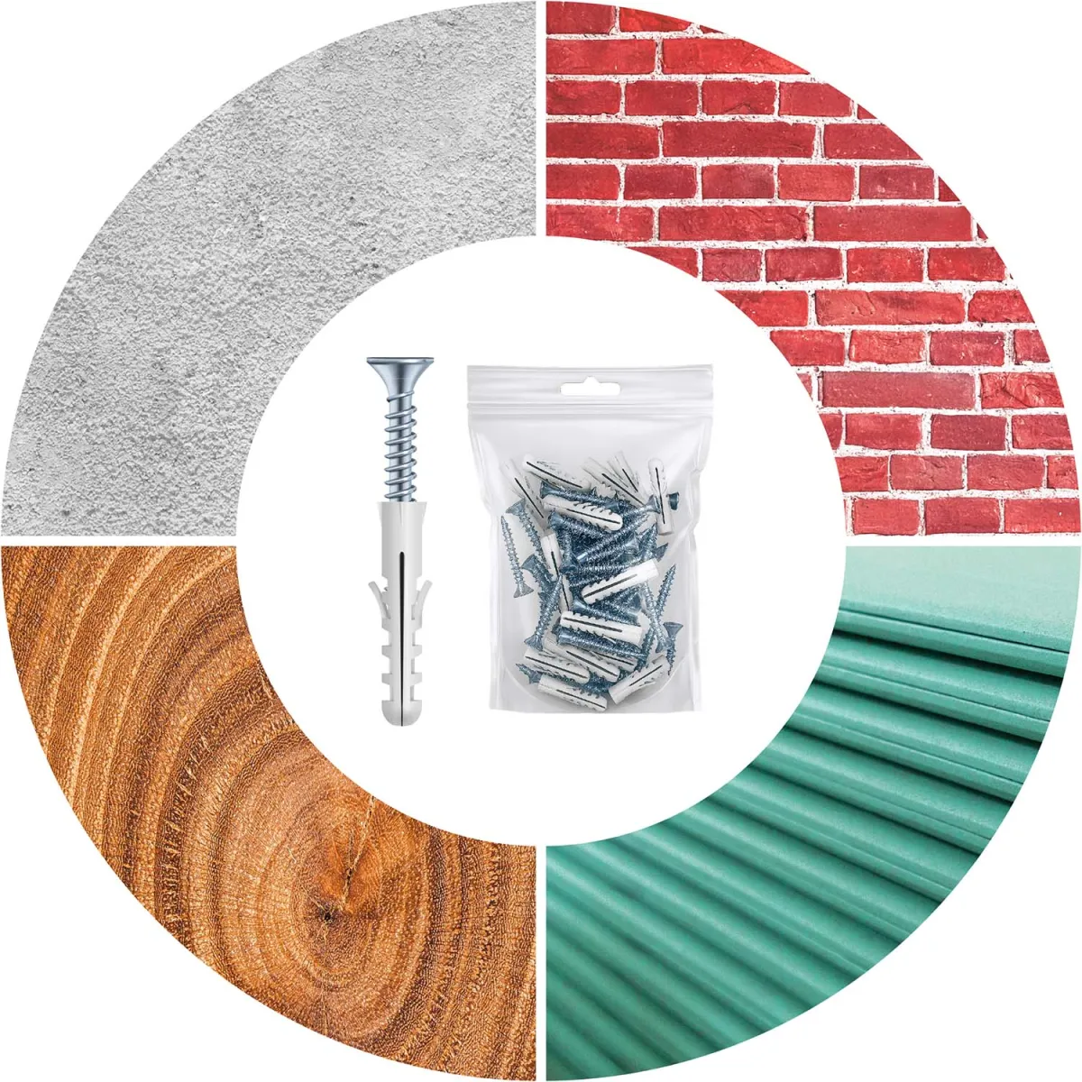 A készlet dübeleket tartalmaz, amelyek ideálisak különféle felületekre való rögzítéshez, például: