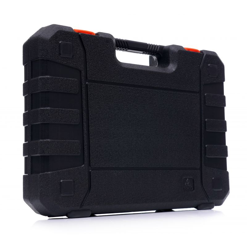 A szerszámok edzett króm-vanádium acélból (CrV) készülnek, amelyet műhelyszerszámokhoz terveztek. A króm biztosítja az acél korrózióállóságát, oxidációállóságát és kopásállóságát, valamint a magas hőmérséklettel szembeni nagyfokú ellenállást. A vanádium hozzáadása megakadályozza a szemcsék növekedését a megmunkálás során, és egyúttal növeli az edzett és megeresztett formák képlékenységét. A tok tartós műanyagból készült, így a szerszámokat rendben tarthatja és könnyen hordozhatja.