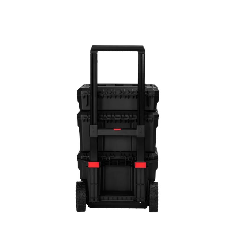 A 3 dobozos szerszámos kocsi | KD1077 három dobozzal van felszerelve, ideális szerszámok, tartozékok és szerelési alkatrészek tárolására és szállítására. Masszív felépítése és átgondolt térszervezése nélkülözhetetlen megoldássá teszi műhelyekben, szervizközpontokban és barkácsolók számára. A kocsi szállító kerekekkel és teleszkópos fogantyúval van felszerelve, így könnyen mozgatható még teljesen megpakolva is.