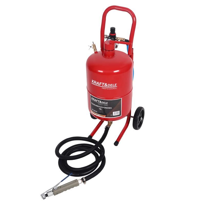 Szifonos homokfúvó, 19L, tartozékok | A KD5879 egy olyan eszköz, amely professzionálisan tisztítja a különféle felületeket a rozsdától, festéktől, lerakódásoktól és egyéb szennyeződésektől. A szifontechnológia használatának köszönhetően a homokfúvó biztosítja a csiszolóanyag egyenletes és pontos szórását, ami gyors és hatékony eredményekben nyilvánul meg. Tartós anyagokból készült, amelyek ellenállnak a csiszolóanyagoknak és a műhelyi körülményeknek. Az ergonomikus kialakítás kényelmes használatot tesz lehetővé hosszú távú használat során is.