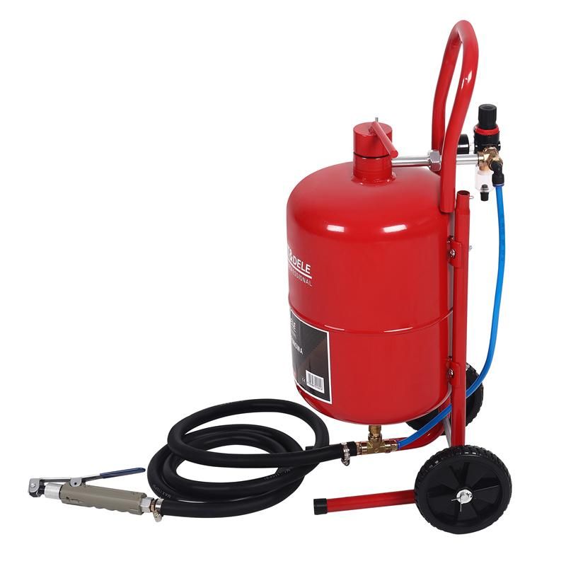 A KD5879 modell ideális műhelyek, garázsok, lakatosok és barkácsolók számára, akik értékelik a minőséget és a megbízhatóságot. A homokfúvó különféle típusú csiszolóanyagokkal működik, például korunddal, üveggyöngyökkel, kvarchomokkal vagy elektrokorunddal, ami lehetővé teszi a széleskörű alkalmazását. A praktikus, kerekes állvány megtámasztja az egész eszközt, és lehetővé teszi a kényelmes mozgatást. A készlet tartalmaz egy pneumatikus tömlőt is, amely biztosítja az eszköz gyors csatlakoztatását a kompresszorhoz.