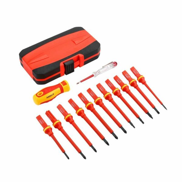 - 14 szigetelt csavarhúzó készlet (különböző méretek és típusok)