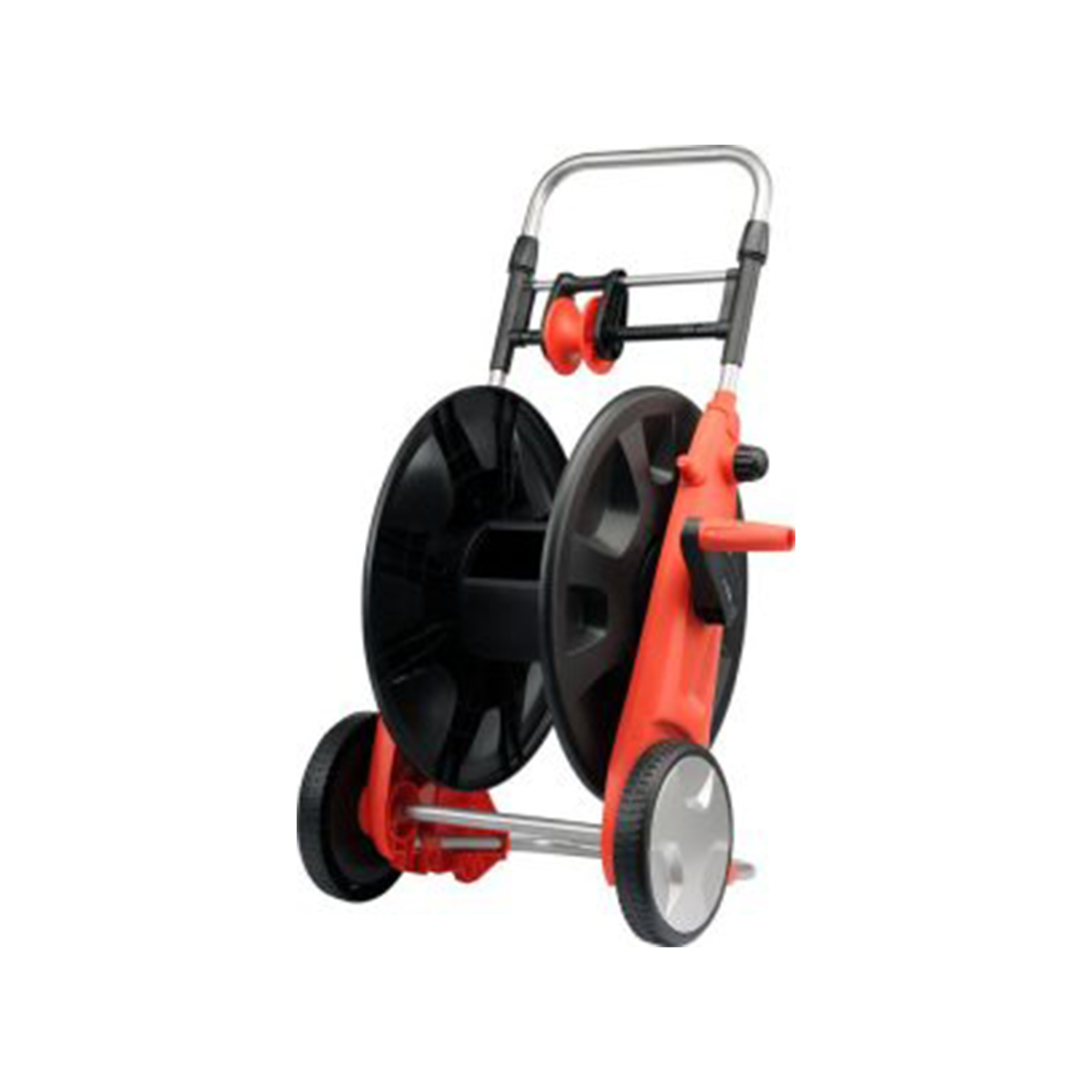 Tömlő kocsi 50 m 3/4 “, 100 m 1/2” és 70 m tömlő átmérőhöz 5/8 “. A dob felett a kocsi tömlővezetékkel van felszerelve, amely megkönnyíti a tömlő egyenletes tekercselését.