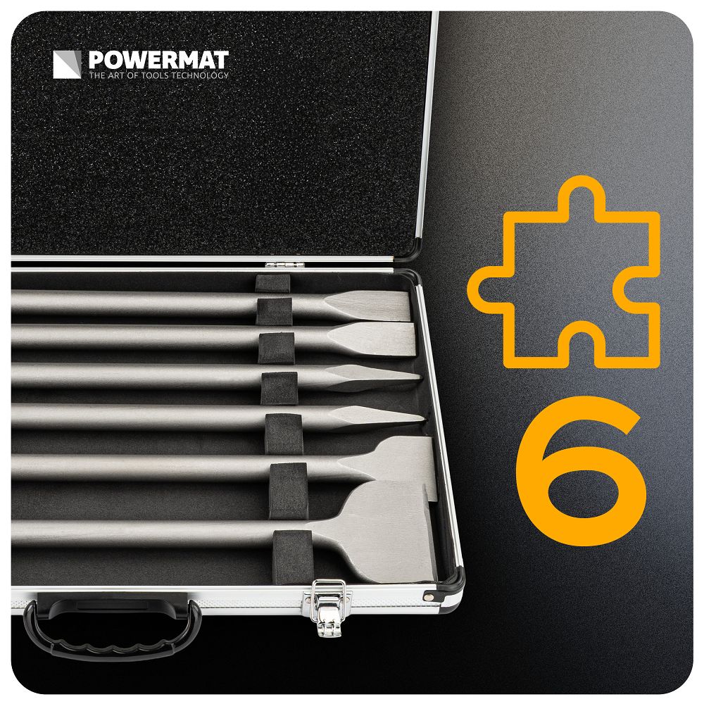 Vésőkészlet SDS MAX, 6 db-os | PM-ZD-6T beton és falazat vésésére és formázására tervezték, igényesebb építési és bontási munkákhoz. A vésők kiváló minőségű, modern technológiával feldolgozott acélból készülnek. Ez az anyag garantálja a deformációállóságot működés közben. A szerszámok így megbízhatóan szolgálnak mind otthoni, mind professzionális használatra. Az SDS Max tartozék stabilitást és az ütési energia hatékony átvitelét biztosítja.