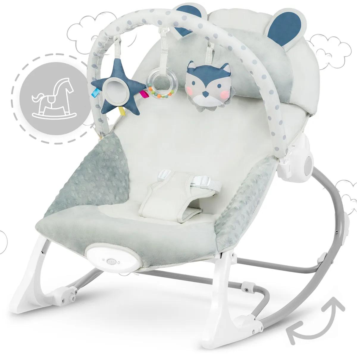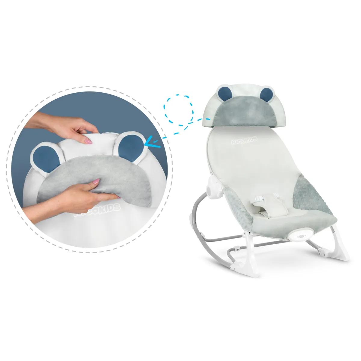 A vibrációs ringatószék, szürke | A Ricokids interaktív funkcióinak köszönhetően kényelmes és biztonságos helyet biztosít babádnak a kikapcsolódáshoz vagy a szórakozáshoz. Sokoldalú és kényelmes eszköz babák számára, amelyet úgy terveztek, hogy egyensúlyt teremtsen a pihenés és a stimuláció között. Gyengéd rezgésekkel rendelkezik, amelyek segítenek megnyugtatni a kicsiket, és egy interaktív játékokkal ellátott, dönthető ívvel, amely magával ragadja a baba látványát és tapintását.