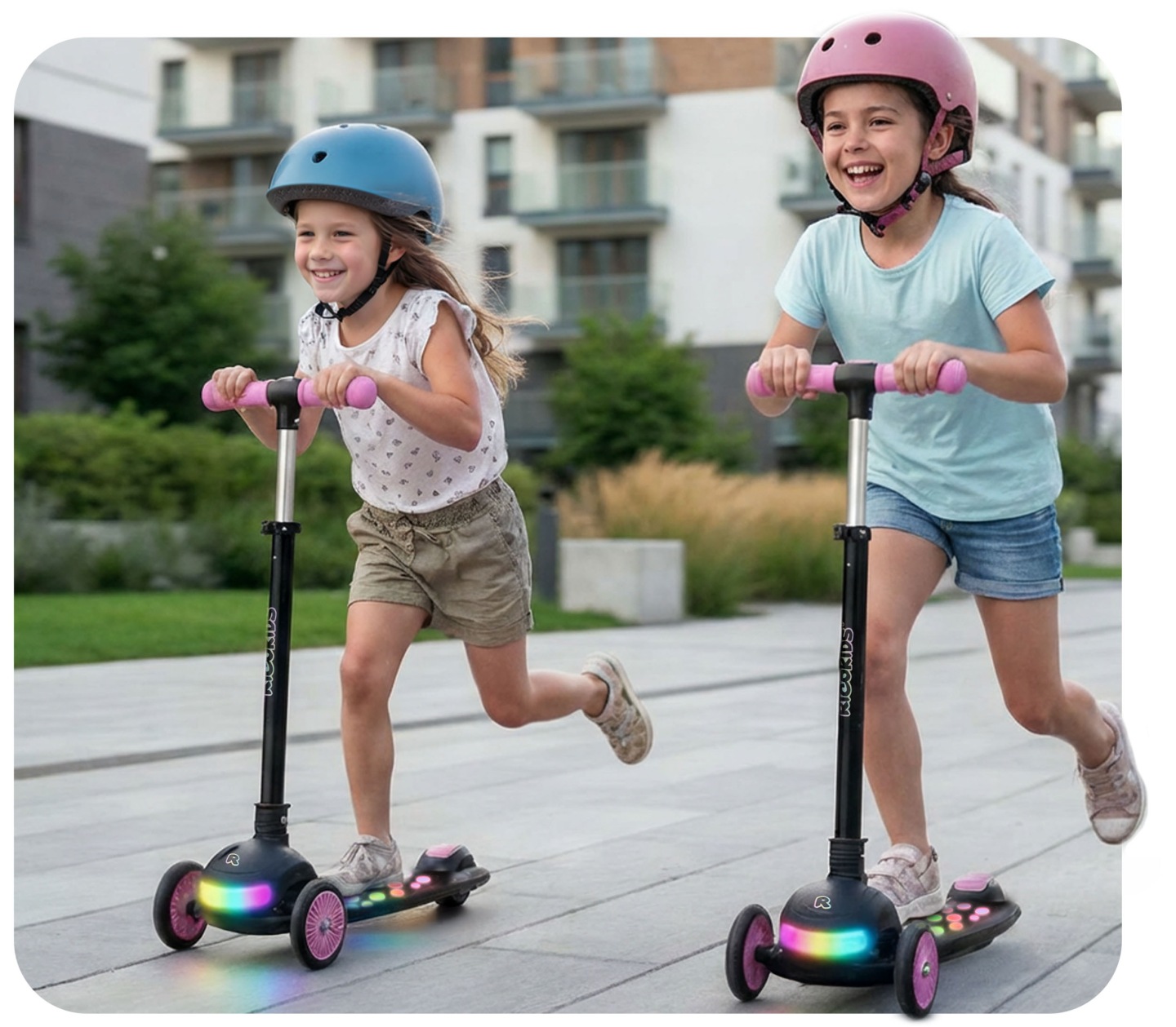 A széles, csúszásmentes állófelület és az ergonomikus fogantyúk növelik a kényelmet és a biztonságot a mindennapi használat során. A roller alkalmas rendszeres szabadtéri tevékenységekhez, és támogatja a gyermekek aktív mozgását. Praktikus kialakításának köszönhetően könnyen hordozható és tárolható, amit értékelni fogsz mozgás közben és otthon is.
