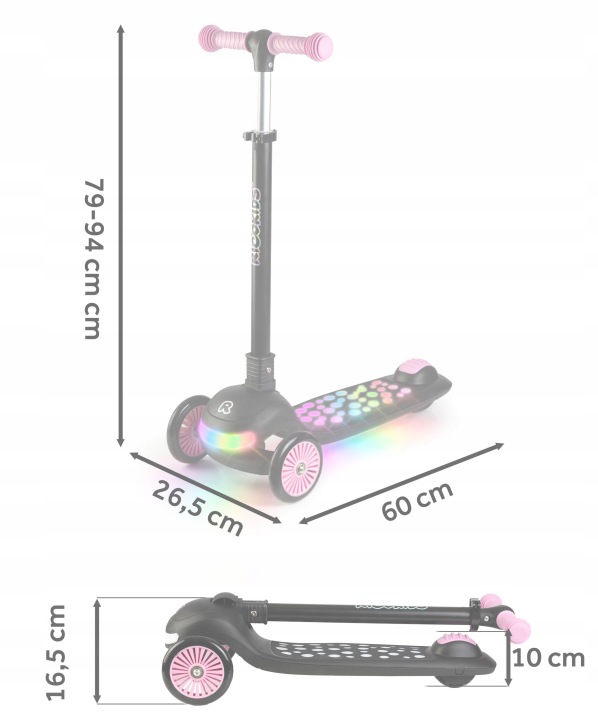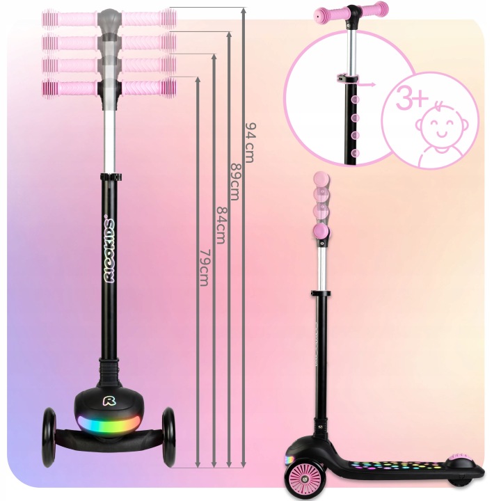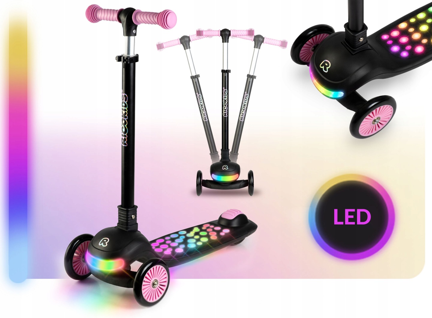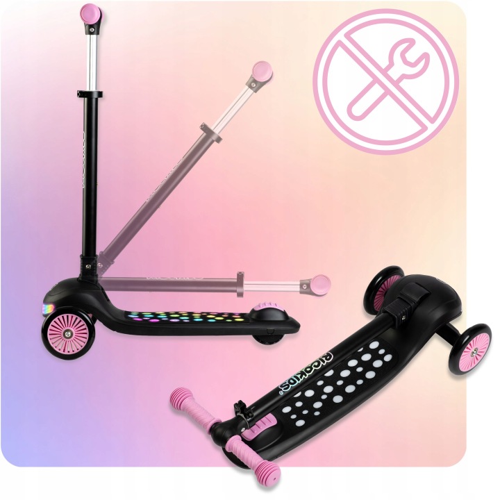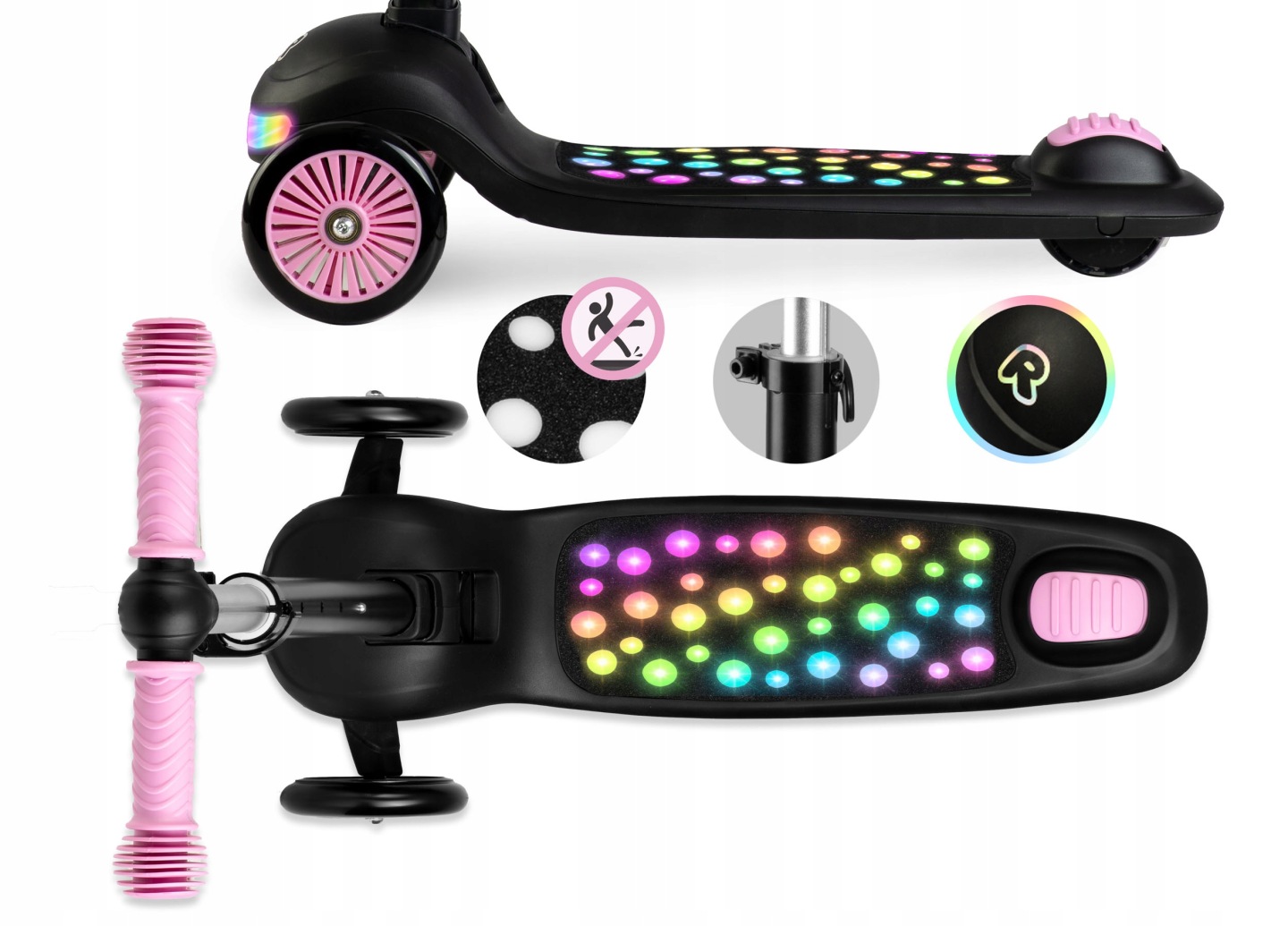 Világítós háromkerekű roller, fekete-rózsaszín | Ricokids Glowi