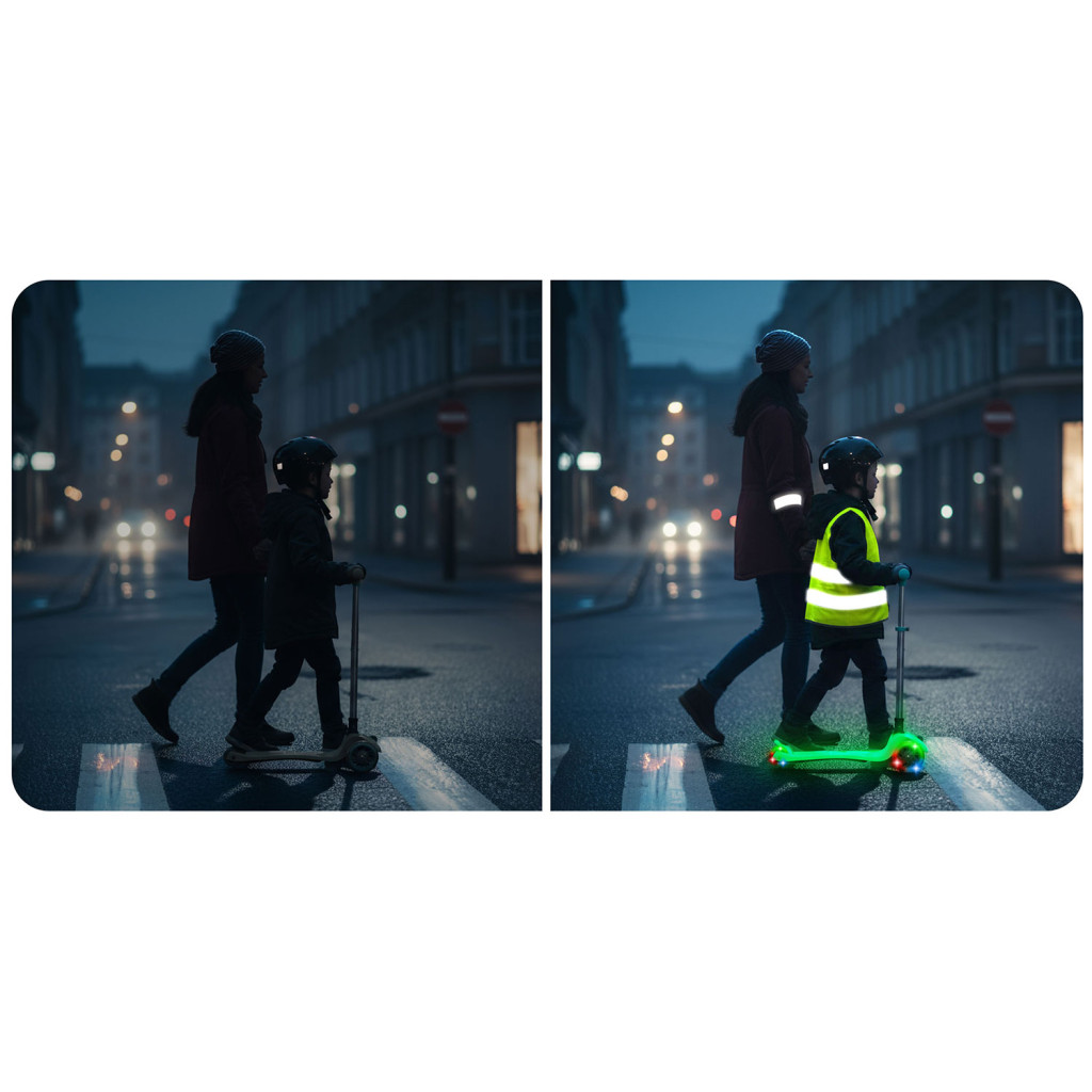 A könnyű és fürge kialakítás könnyű kezelhetőséget és jó irányíthatóságot biztosít vezetés közben. Világító elemekkel van felszerelve, amelyek növelik a láthatóságot és vonzóbbá teszik a vezetést, különösen rossz fényviszonyok között. A szilárd alap és a kiváló minőségű kidolgozás stabilitást és kényelmet biztosít használat közben. Az összecsukható kialakítás lehetővé teszi a gyors összecsukást és a könnyű hordozást vagy tárolást.