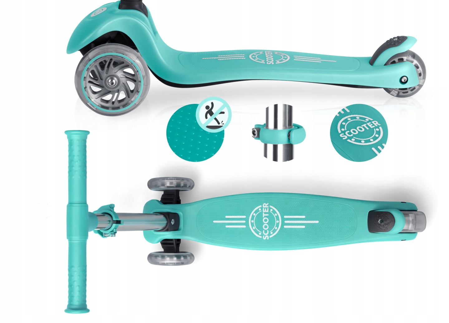 Világítós háromkerekű roller, türkiz | Ricokids Glow