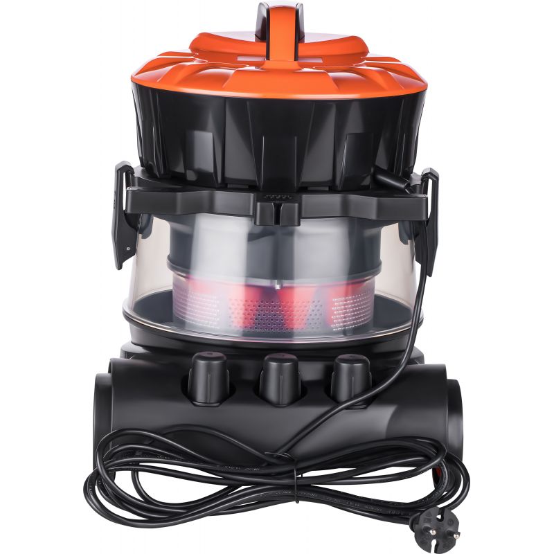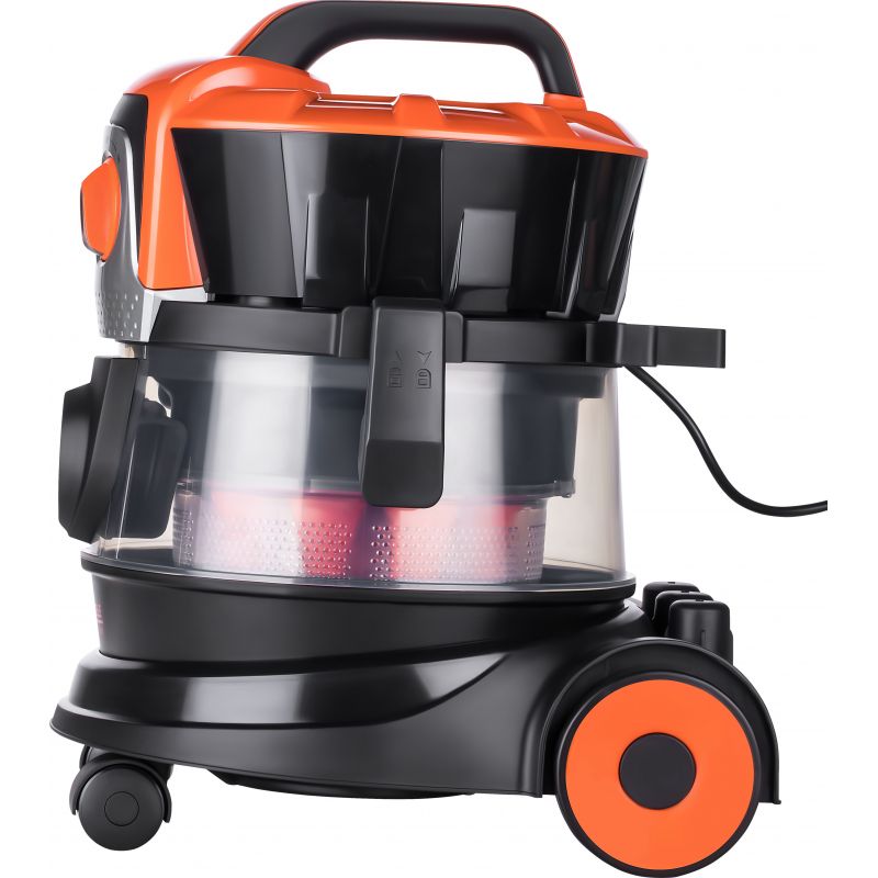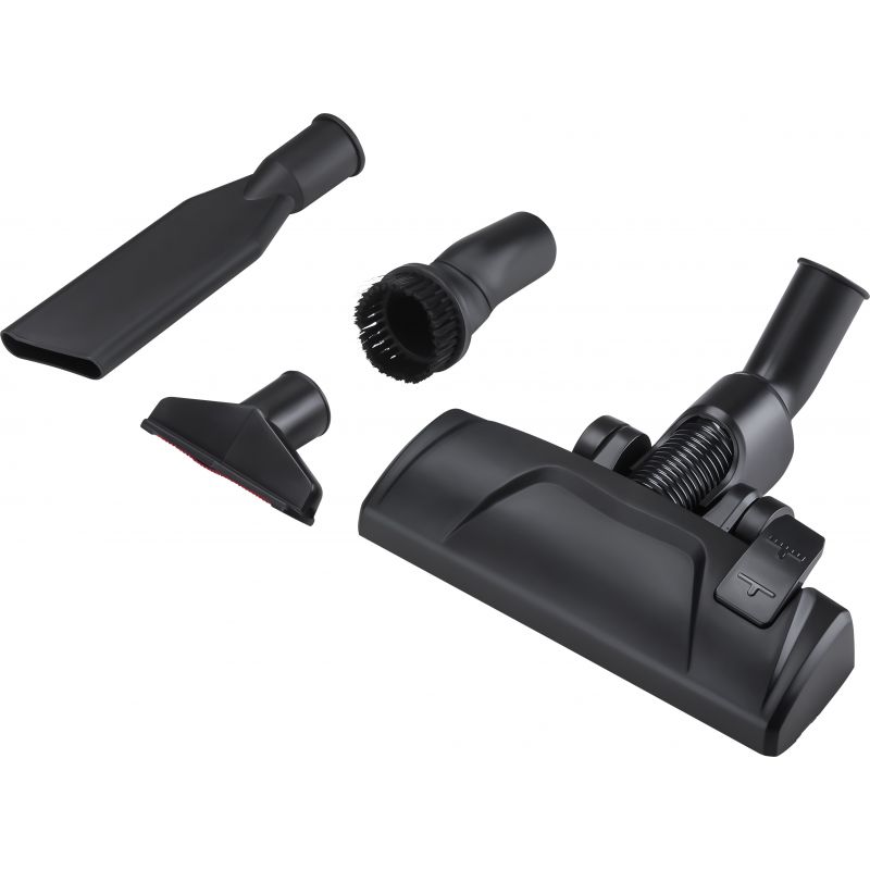 A porszívó fúvó funkcióval, praktikus tartozéktartóval az alapban, egy 2 részes csővel és különféle felhasználási módokhoz való tartozékkészlettel is rendelkezik. A kerekek megkönnyítik a készülék mozgatását, a rugalmas tömlő pedig növeli a munka kényelmét különböző felületek és nehezen elérhető helyek tisztításakor.